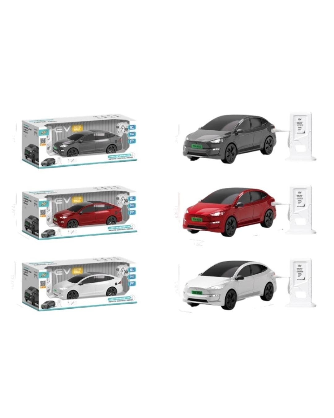 The 2.4G Remote Control New Energy Vehicle TSL is a stylish RC car inspired by modern Tesla designs. It features smooth 2.4 GHz wireless control for stable, interference-free operation, allowing multiple cars to race together. The car includes realistic details such as working lights, music functions, and a charging-port accessory for added play value. Available in colors like grey, red, and white, this durable model offers kids a fun and modern remote-control driving experience.