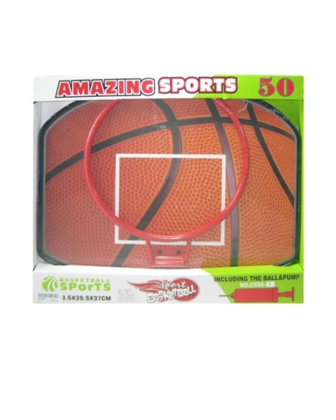 A basketball set, perfect for your child, comes complete with a ball, a pump, and a ring, ideal for indoor play; packaged in a convenient cardboard box, suitable for children aged 5 years and older.