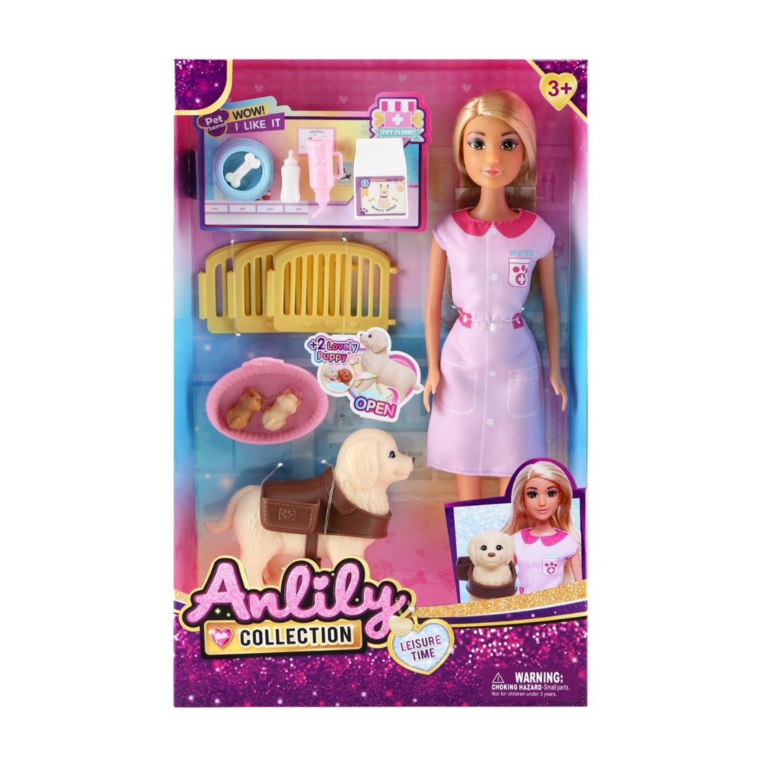 Bring animal care to life with the Anlily Veterinarian Doll with Pets playset. This set includes an Anlily doll dressed in a veterinarian outfit, a dog, adorable puppies, a pet carrier, food bowl, bone, and other accessories for endless pretend play. Perfect for children aged 3 and up, it encourages creativity, role-play, and a love for animals.