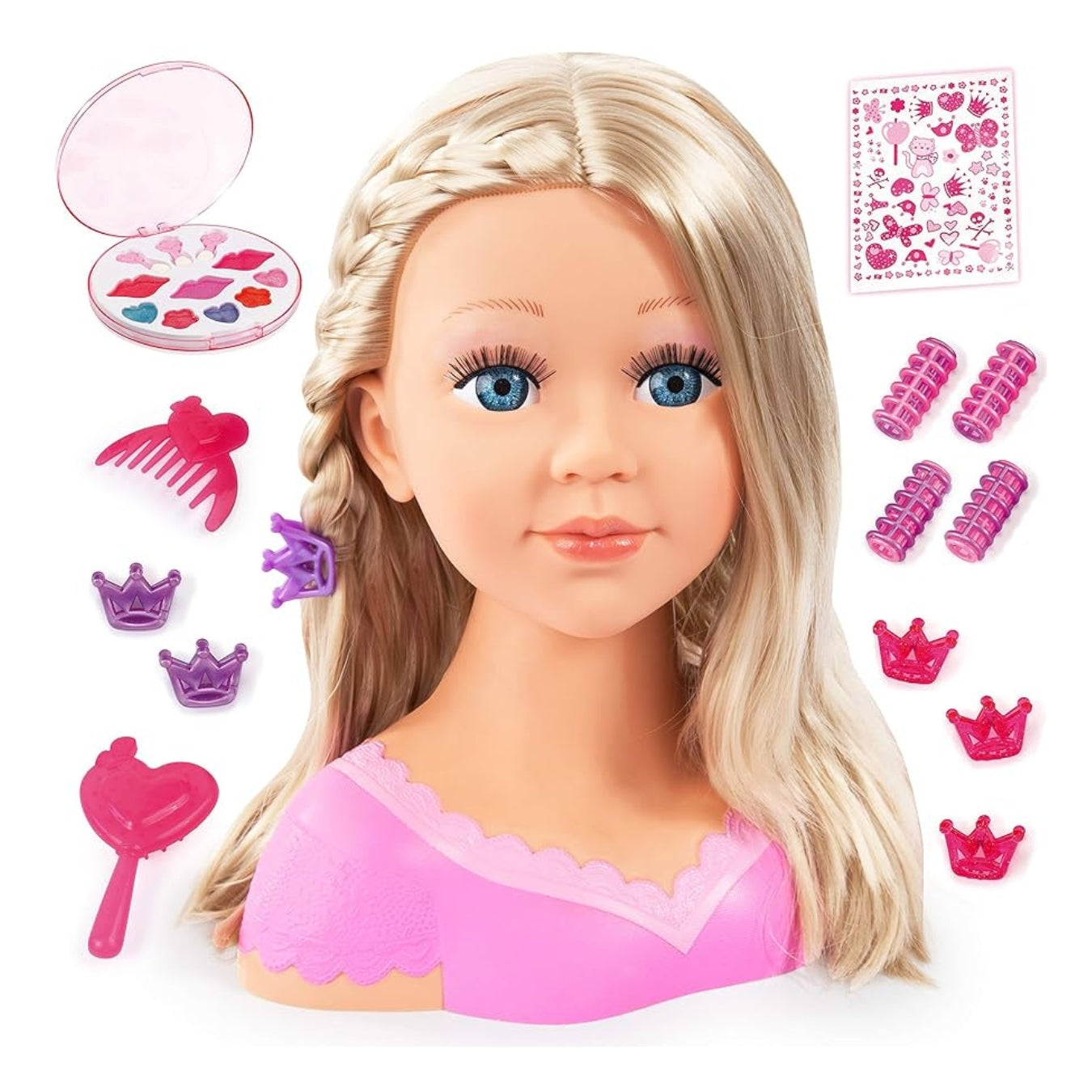 With included accessories like hair clips, curlers, a brush, and a comb, kids can create new hairstyles again and again. Complete the look with fun make-up play for the ultimate glam experience—ideal for creative and imaginative play!