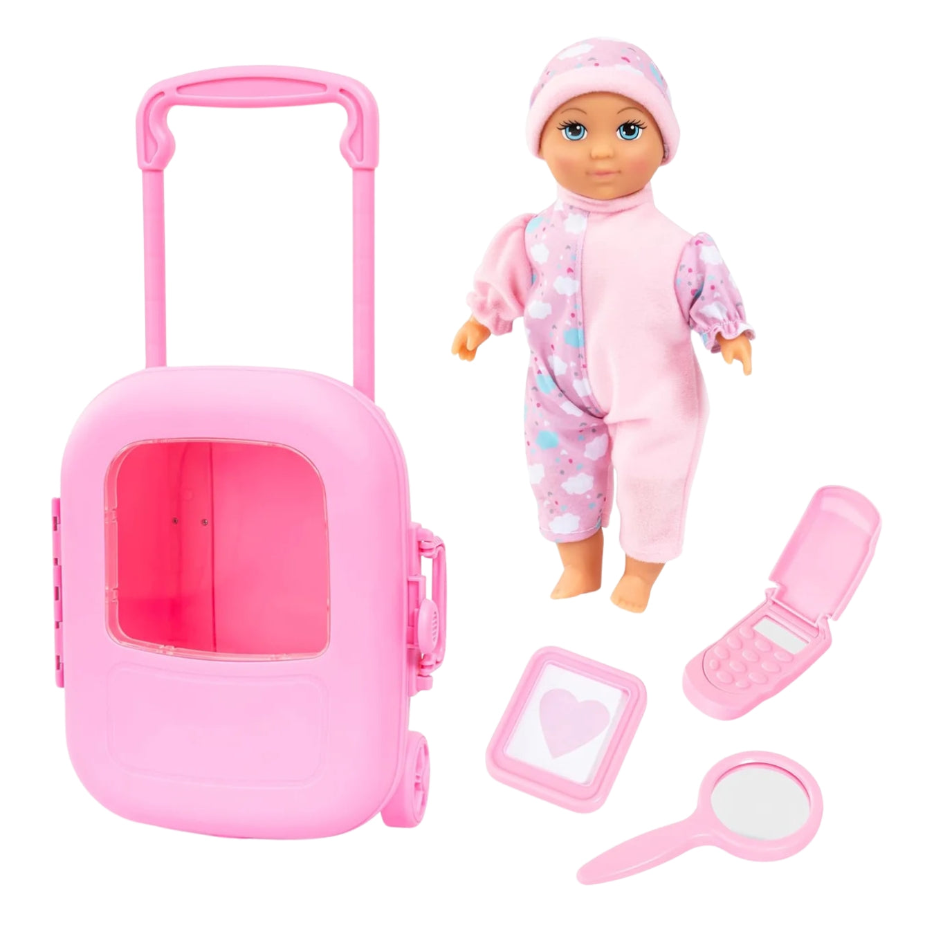 This charming doll playset includes a 28 cm soft-bodied baby doll dressed in a cozy bodysuit with a matching hat—perfect for cuddles and little hands. The set features a comfy baby carrier with a blanket and pillow, plus adorable accessories like a teddy bear, bottle, and pacifier for endless nurturing fun. Ideal for bedtime routines and imaginative play!