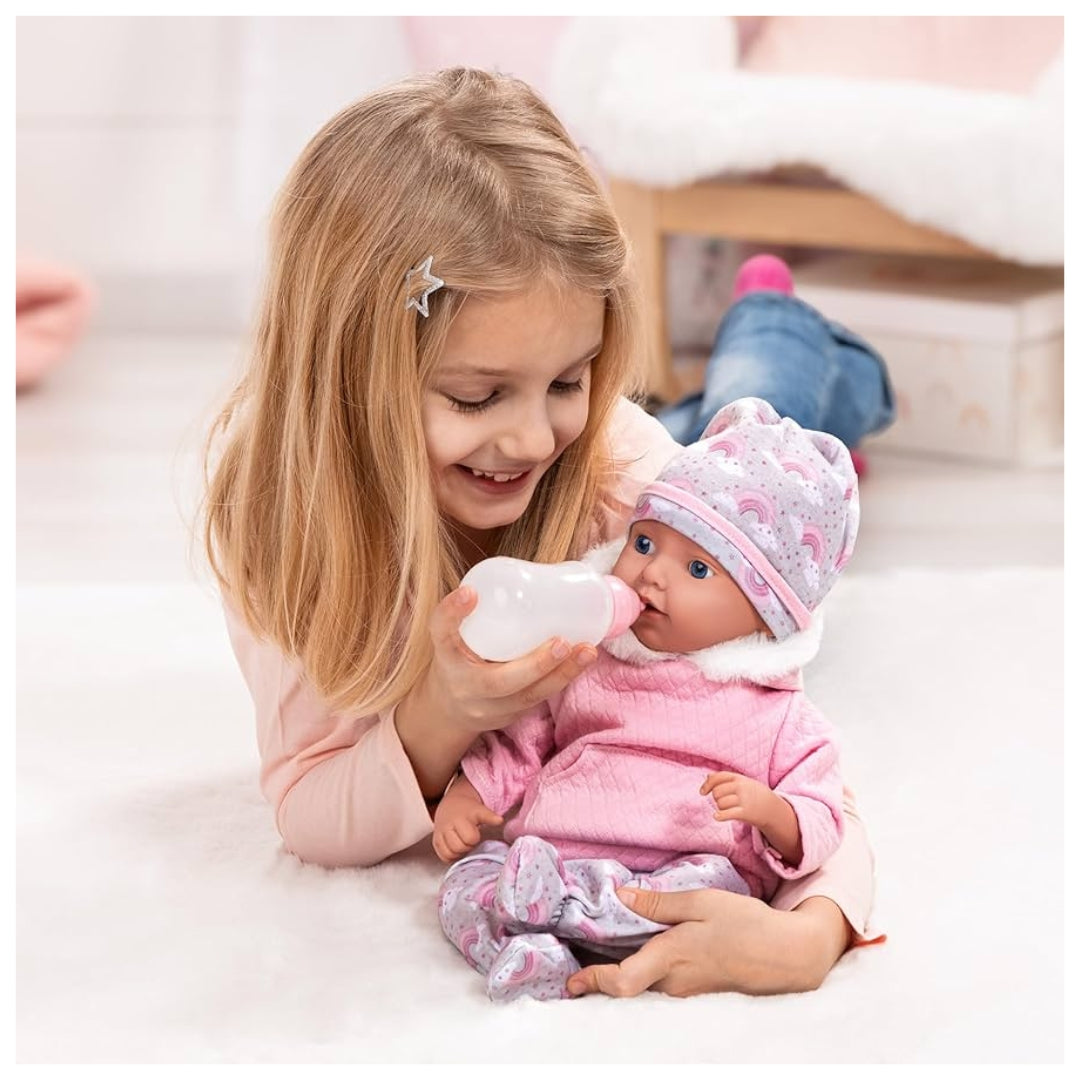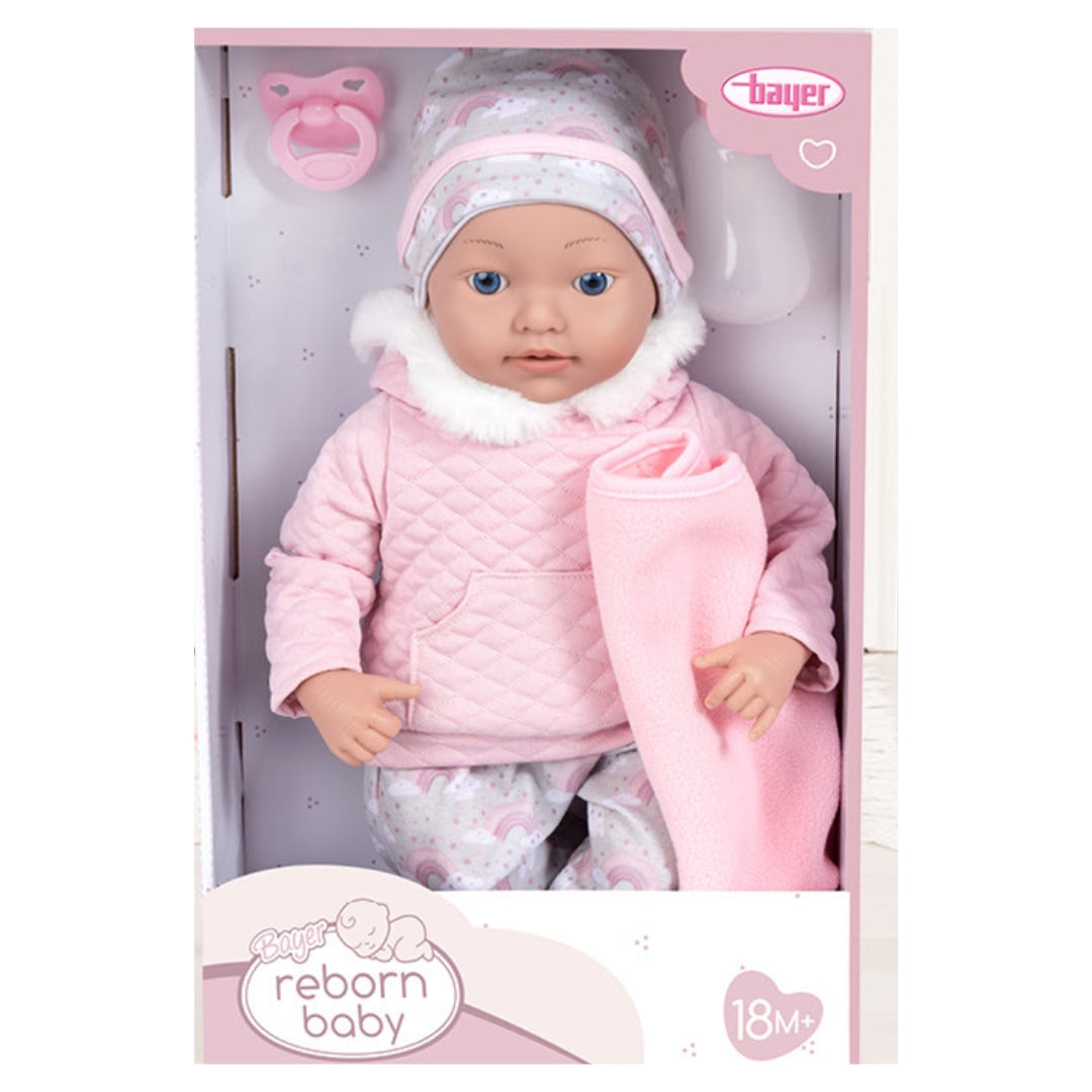Experience the charm of this 38 cm reborn baby doll, crafted with a weighted body for a truly lifelike feel. Featuring a sweet, realistic face with detailed hands and feet, this doll comes dressed in beautifully designed clothing with a matching hat. A cuddly blanket and dummy are included, making it the perfect set for children who love nurturing and imaginative play.