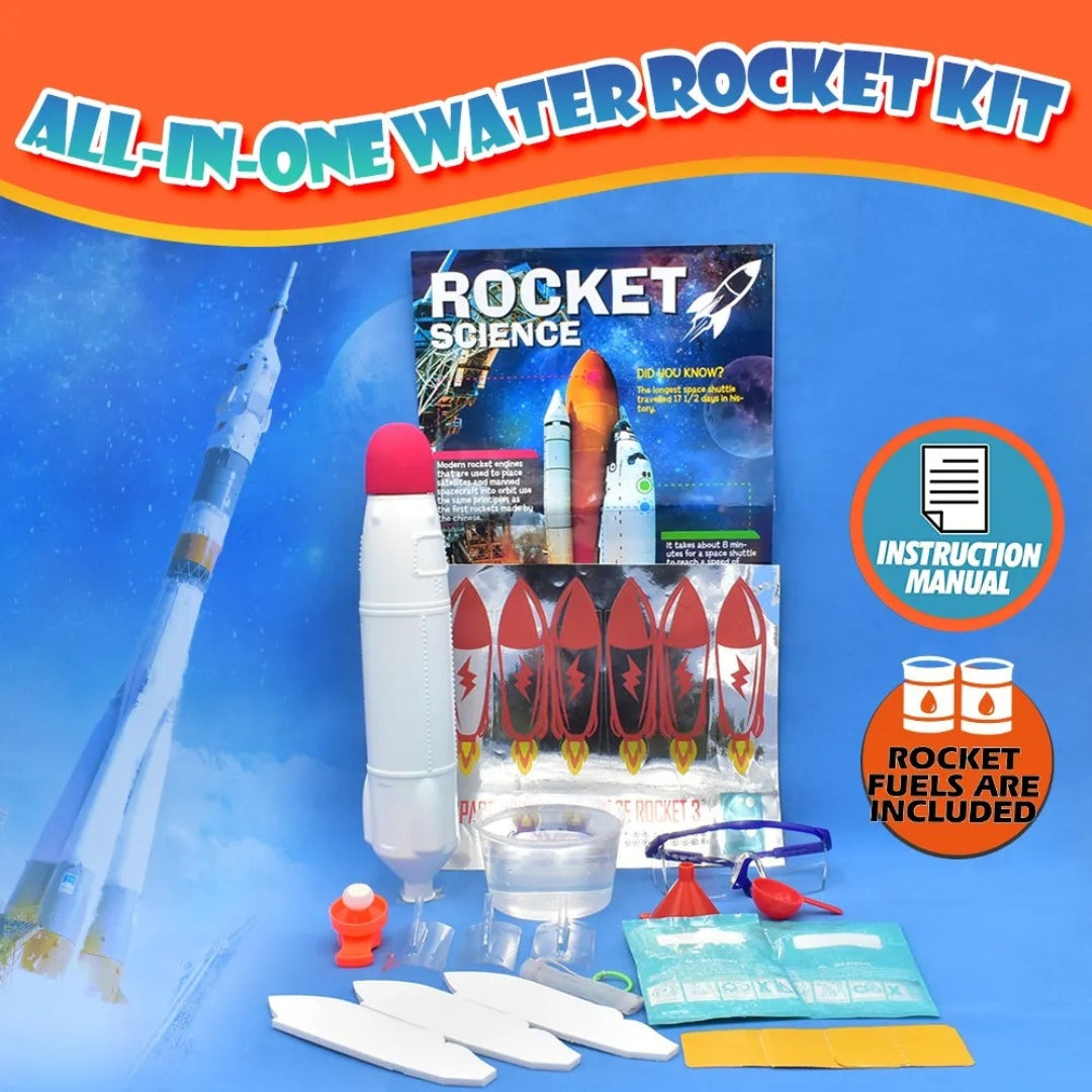 Experience the thrill of glow-in-the-dark rockets that illuminate the night sky! This rocket set includes the body, tail, and stickers, ensuring easy, battery-free assembly and launching up to 50 feet through an acid-base reaction; with a soft foam rocket head for child safety upon landing, this science kit makes the perfect gift for space and science enthusiasts, offering ample customization space for personal touches and a design that reflects expertise akin to that of a genuine rocket scientist.