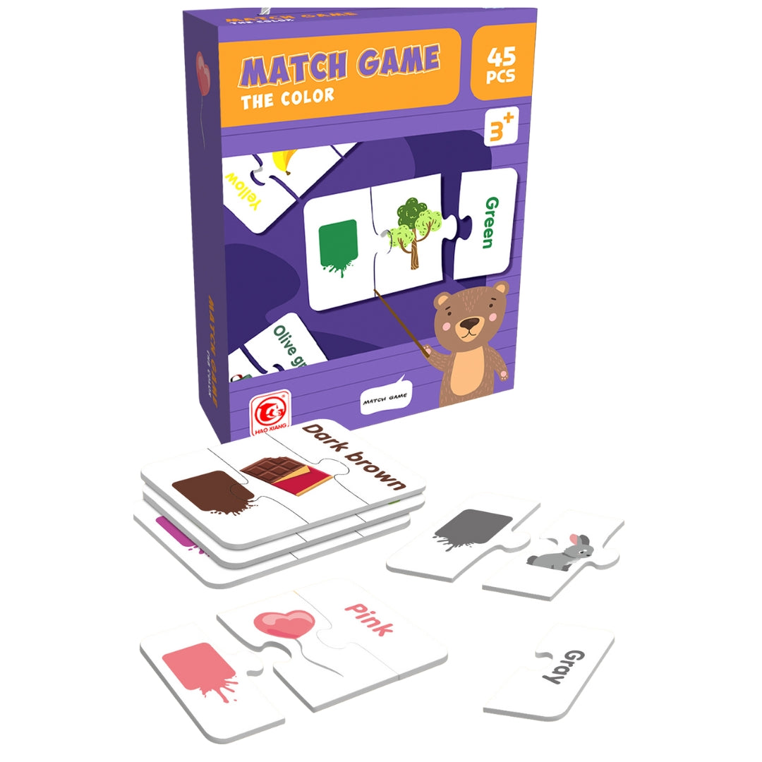 he Color Match Puzzle is an engaging educational game designed for children aged 3 and up. This 45-piece set includes 15 three-piece puzzles that help kids recognize and match colors with corresponding objects. In addition to color recognition, the game encourages early word recognition, cognitive development, and critical thinking skills. Perfect for interactive and fun learning, it provides a playful way for young children to build foundational skills.