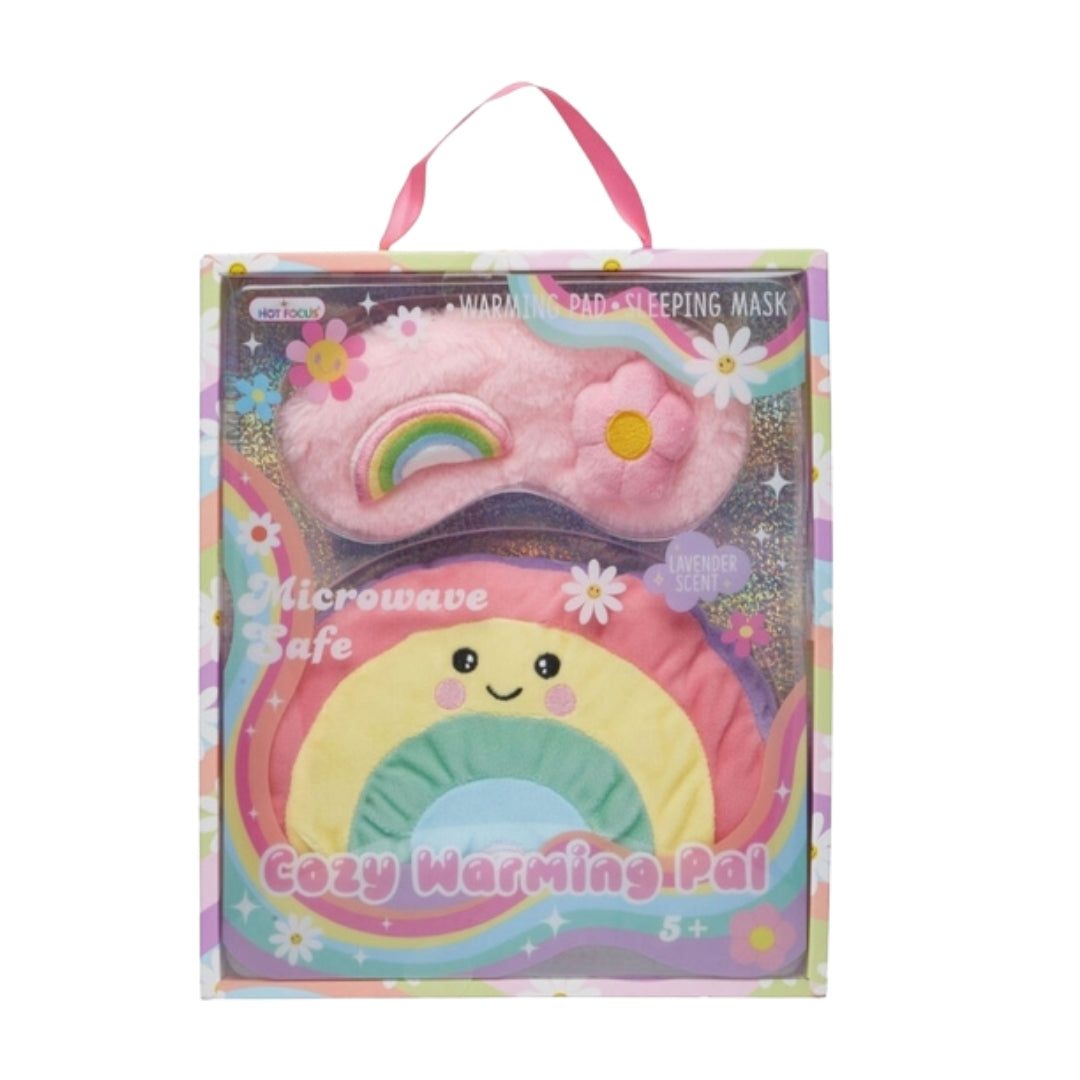 Add a touch of magic to bedtime with the Cozy Warming Pal Rainbow. This kid-safe set includes a microwaveable, lavender-scented warming pal in cheerful rainbow colors and a soft sleeping eye mask, perfect for cozy and relaxing nights.