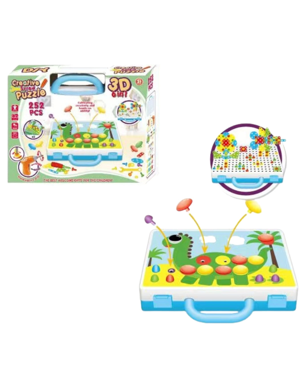 This STEM-focused DIY mosaic puzzle set includes 252 pieces and a child-friendly electric drill with various tools for building 2D and 3D crafts. It encourages creativity, imagination, and motor skill development while providing hands-on educational fun for children.
