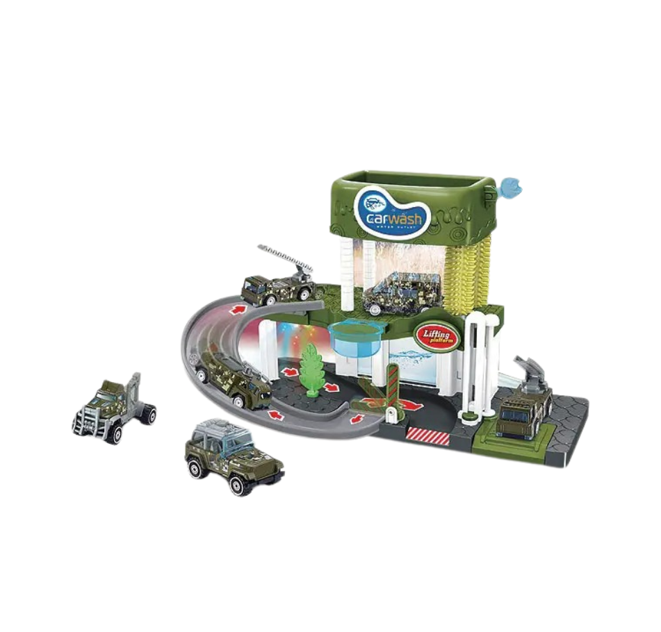 This multi-level car wash lets little heroes take their vehicles (military vehicles included, or use their own!) on a thrilling cleaning journey. Vehicles can enter via a sleek elevator or an exciting downhill ramp, then get a sparkling clean with a wet brush and realistic sound and light effects! The fun atmosphere keeps the action going for hours, making bath time or playtime a blast!
