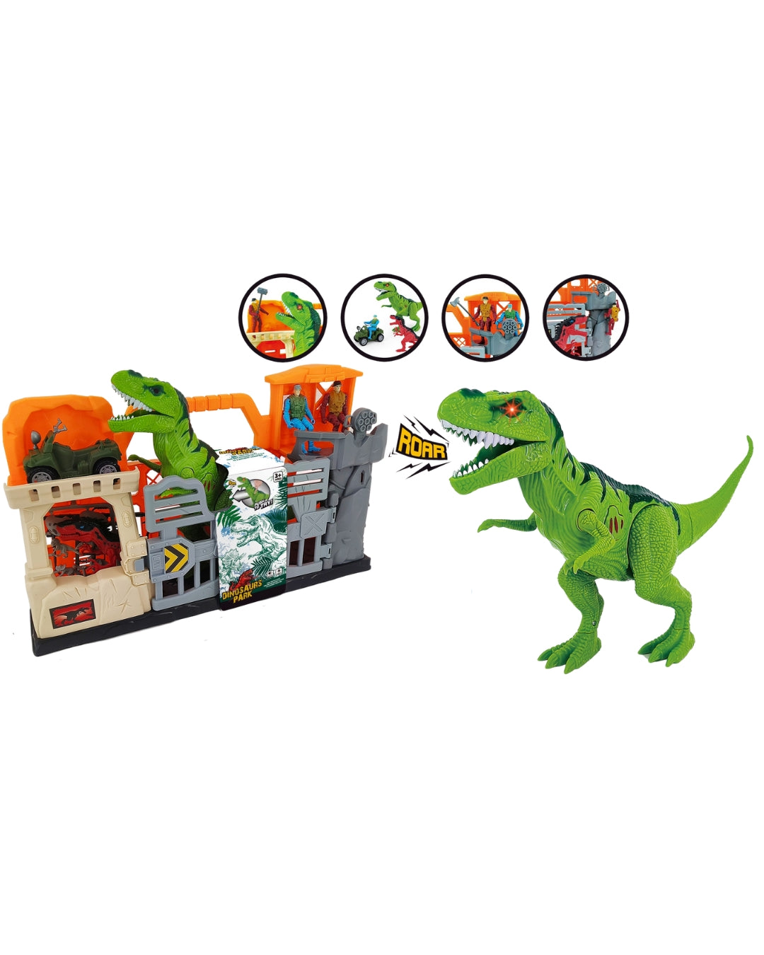 The Dinosaur Adventure Quad Playset brings prehistoric excitement to life with a variety of figures and accessories. It includes a large T-Rex, another dinosaur figure, two action figures, a quad bike, and a guard tower, giving children everything they need to stage thrilling dinosaur adventures. The set features lights and sounds, adding an interactive element that enhances imaginative play. Designed for children who love dinosaurs and action-packed storytelling, this playset encourages creativity, role-playing, and endless fun in a dinosaur-themed world.