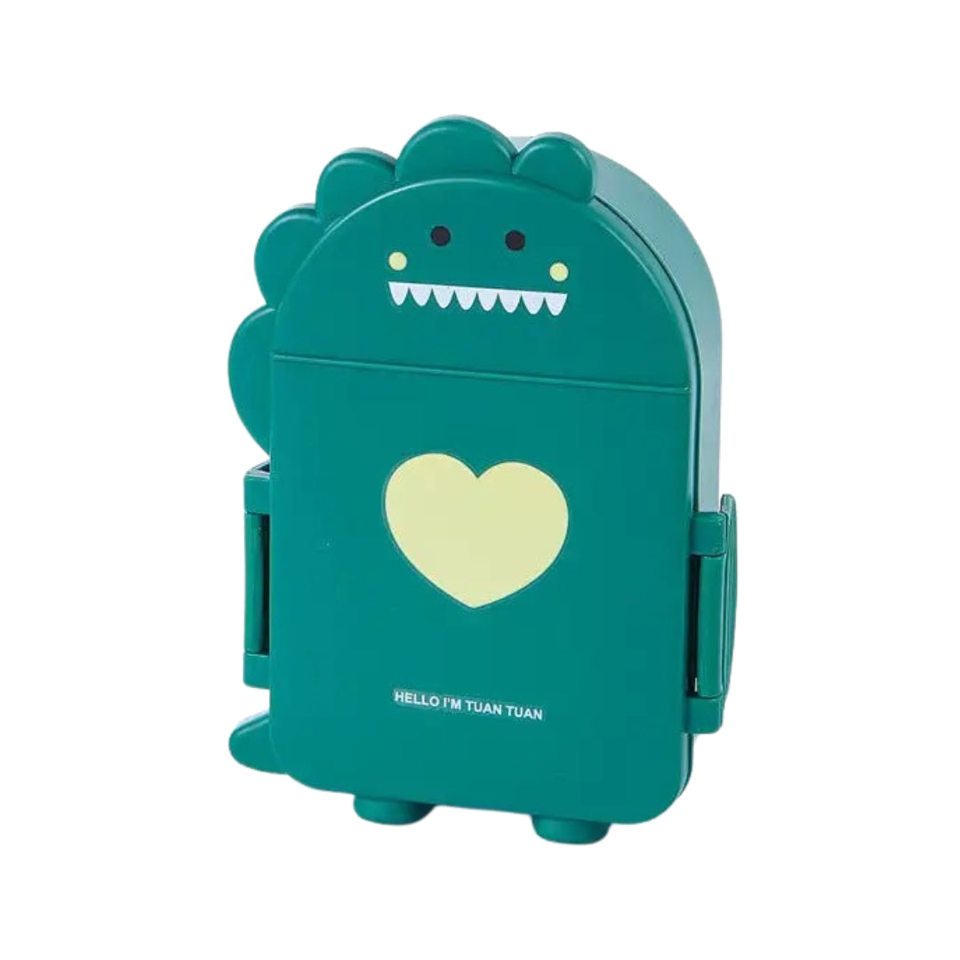 Offering a dinosaur-themed lunch box crafted from food-grade PP material for safety, cleanliness, and scald prevention, featuring a dual-compartment design to keep foods separate and flavors intact, complete with a spoon and fork, snap closures, and an adorable dinosaur shape, this reusable lunch box is ideal for school, work, and travel, promoting healthy eating habits and adding fun to mealtime for children.