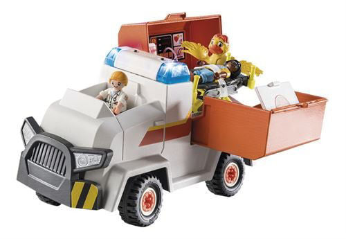 Fully equipped for care: Open the fold-out treatment compartment to reveal a stretcher and various medical tools, allowing your child to act out life-saving medical care.