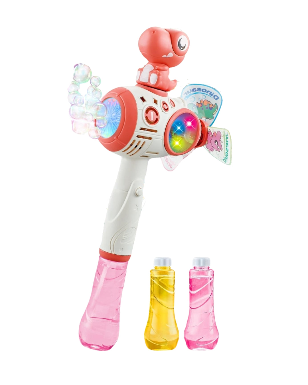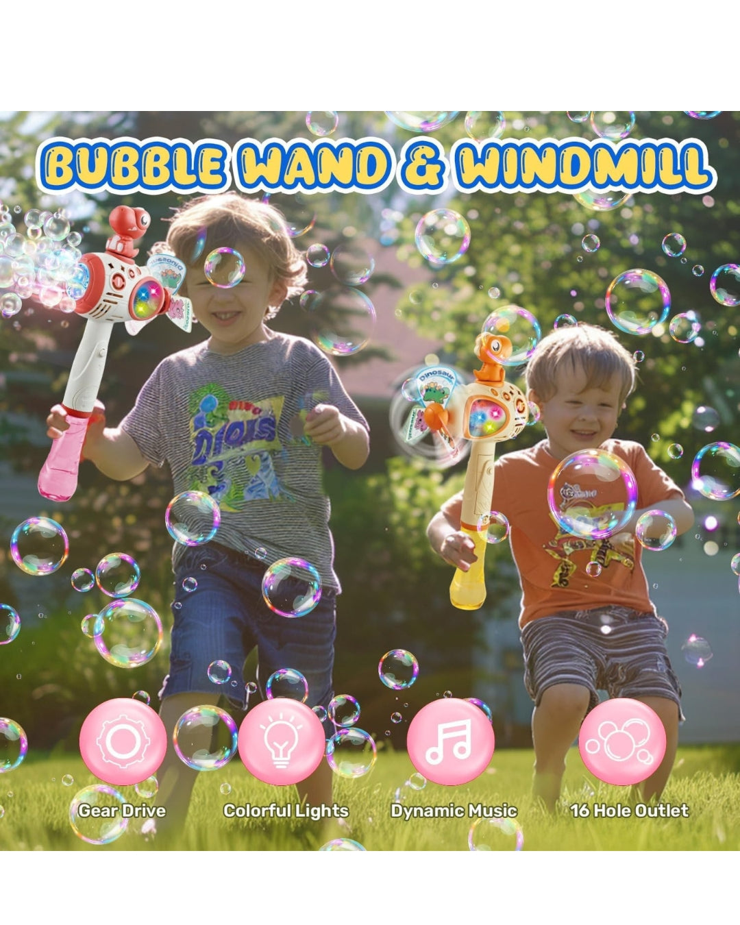 Featuring a 2-in-1 design with a Dino Bubble Wand and Windmill, this bubble wand set incorporates a delightful dinosaur theme with a detachable dinosaur doll to engage kids further. The detachable windmill on the back spins as kids run, creating a mesmerizing scene. With its user-friendly operation and visually appealing design, this bubble machine for kids aged 3-5 is guaranteed to be a hit at any event.