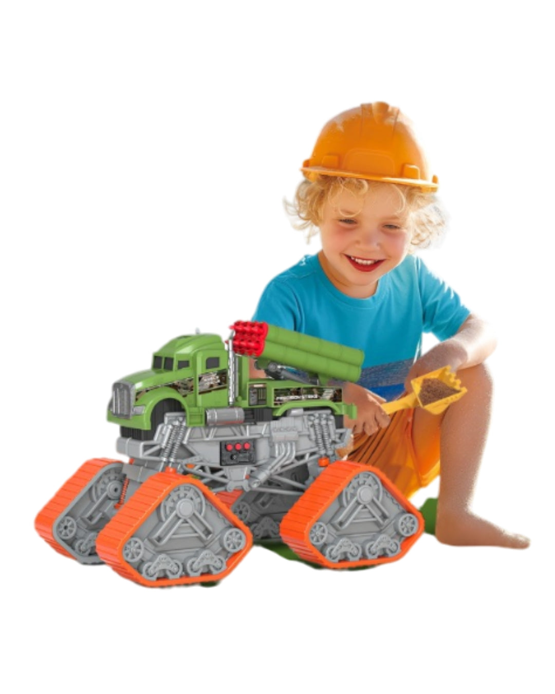 This 1:10 scale engineering missile launcher features a covered design and spring-powered action with 6 missile rounds for realistic play. Durable and detailed, it’s perfect for kids who enjoy imaginative construction and action-packed vehicle adventures.