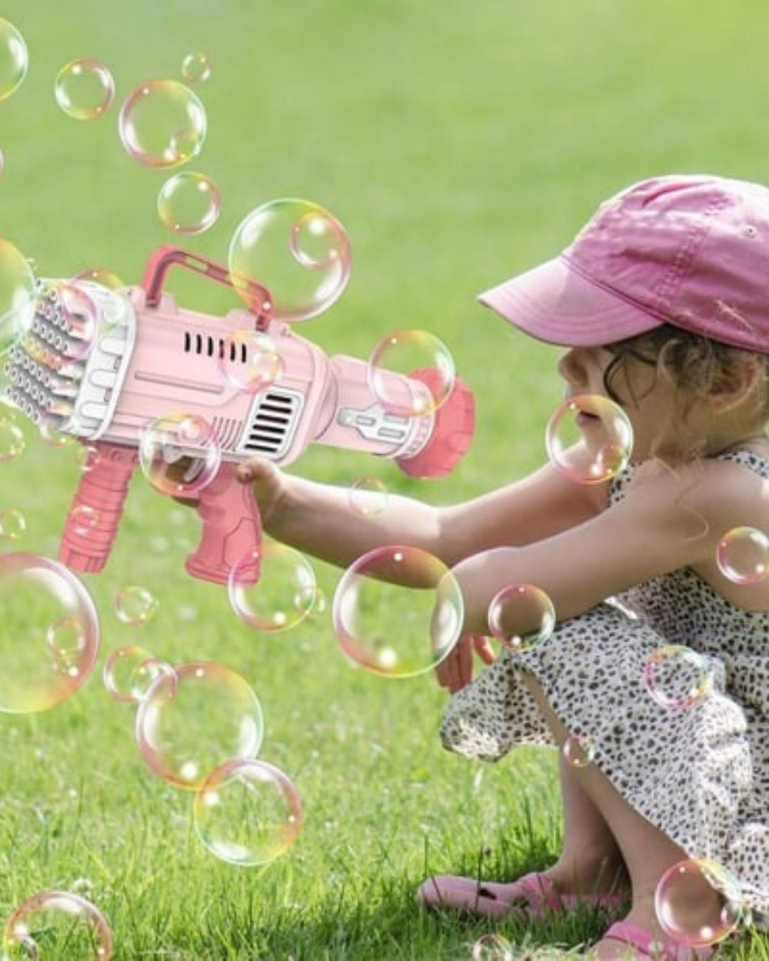 Playing with a bubble gun also aids in developing children's imagination and creativity, as they can use their imagination to create a variety of interesting scenarios and stories in the game. Additionally, playing with a bubble gun with other children can promote social skills and a sense of teamwork.