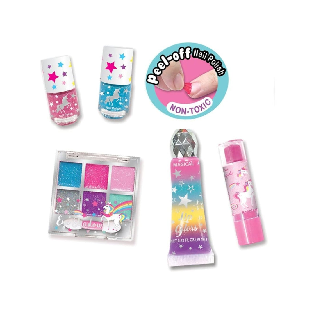 Add a touch of sparkle and fun with the Glitter Cosmetic Butterfly Set by Hot Focus—perfect for any little glam lover! This dazzling kit comes in a reusable acrylic butterfly case and includes nail polish, lip gloss, lipstick, and a colorful eyeshadow palette with a brush. It’s the ultimate starter set for creative beauty play and makes a wonderful gift for stylish kids.