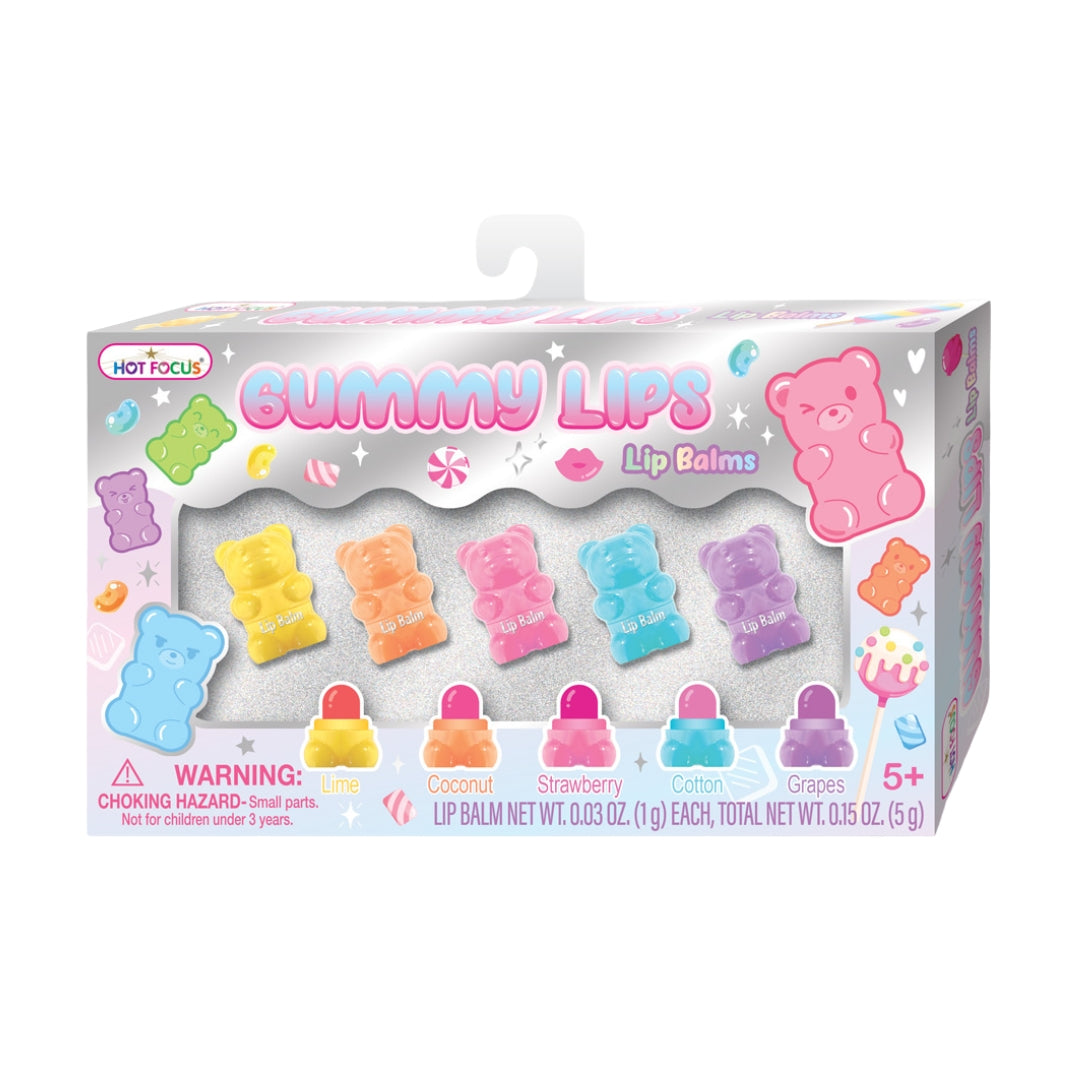 Treat your little one to sweet, colorful fun with the Gummy Lips Gummy Bear Lip Balms! This adorable set includes 5 flavored lip balms—Lime, Coconut, Strawberry, Cotton Candy, and Grape—each in a cute gummy bear-shaped container. A fun and tasty way to keep lips soft and moisturized, the balms come in vibrant colors that match their scents: yellow, orange, pink, blue, and purple. Perfect as a birthday gift or a cute everyday surprise!