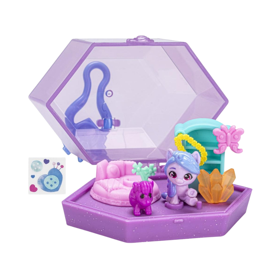 Discover a world of magical mini friends from across Equestria! This Mini World Magic playset includes charming mini scenes and accessories inspired by the My Little Pony: Tell Your Story series. Kids can build a unicorn-themed bedroom with a bed, dresser, pet friend, and flower necklace. Everything connects to the keychain base for customizable fun, and the included sticker sheet lets kids add their personal touch. All pieces store inside a crystal carrying case with a keychain perfect for magical adventures on the go!