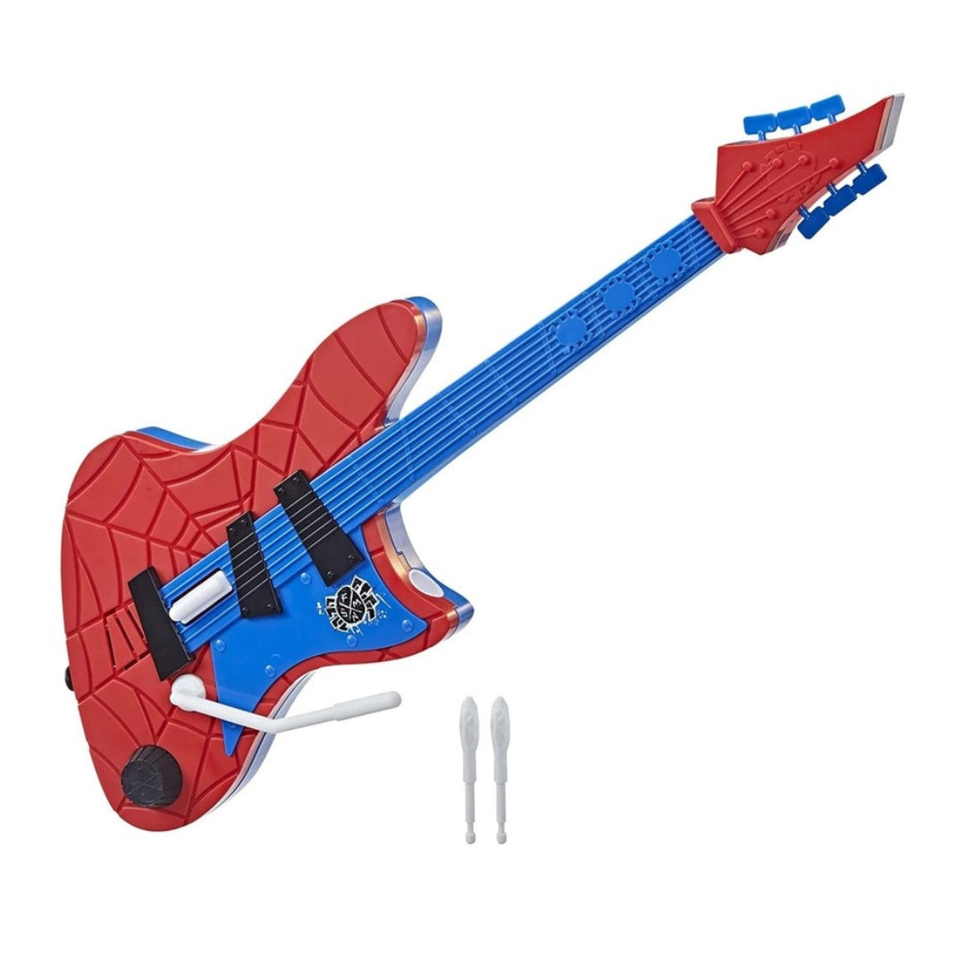 Unleash your inner rock star and superhero with the Spider-Man: Across the Spider-Verse Ultimate Web Power Guitar! This dynamic toy combines musical play with web-blasting action, allowing kids to activate music and sound effects using the strum pad. The Spider-Man knob lets them switch between music genres and add distortion, while the whammy bar launches web projectiles for added excitement. Perfect for fans of the Spider-Verse, this guitar offers hours of imaginative play and adventure.
