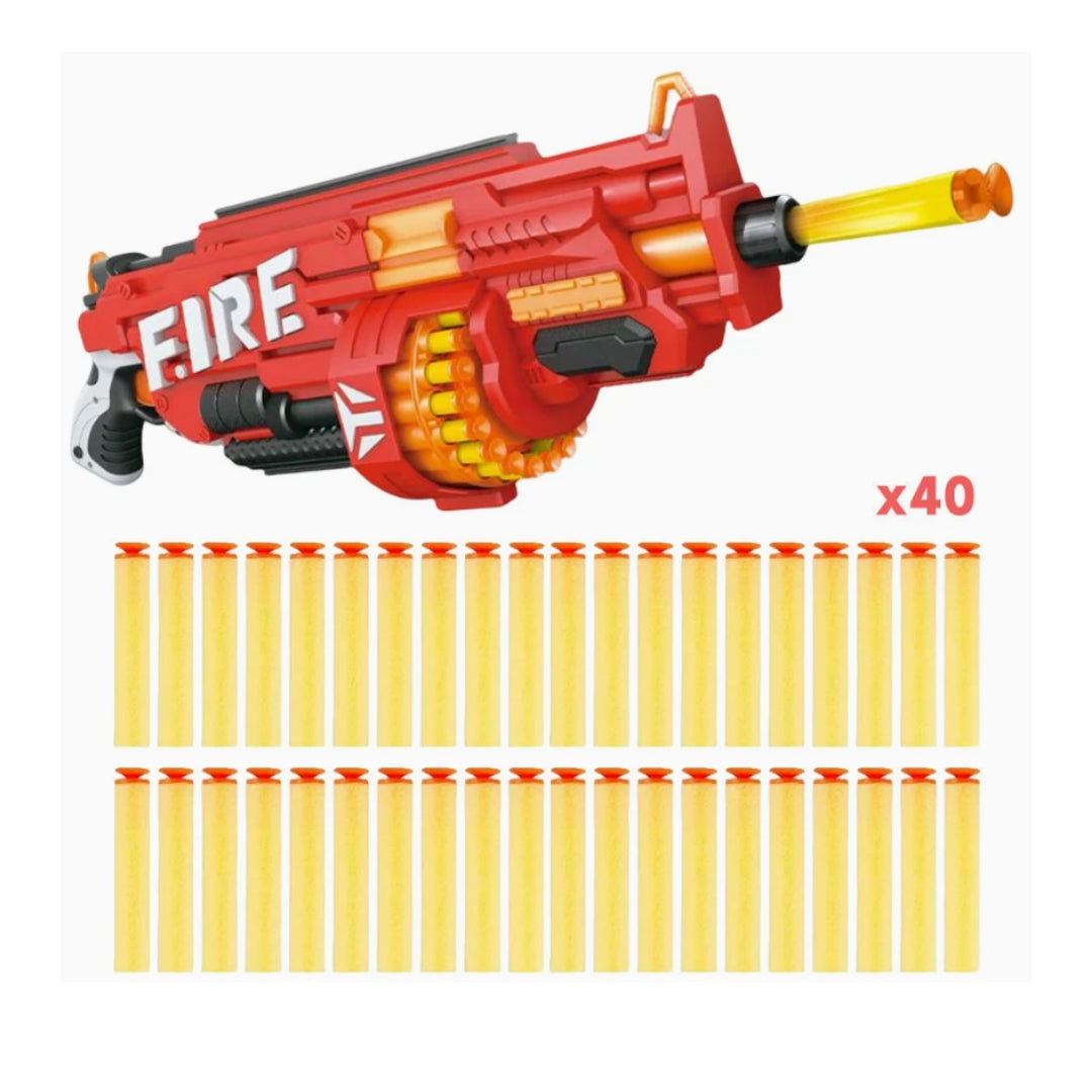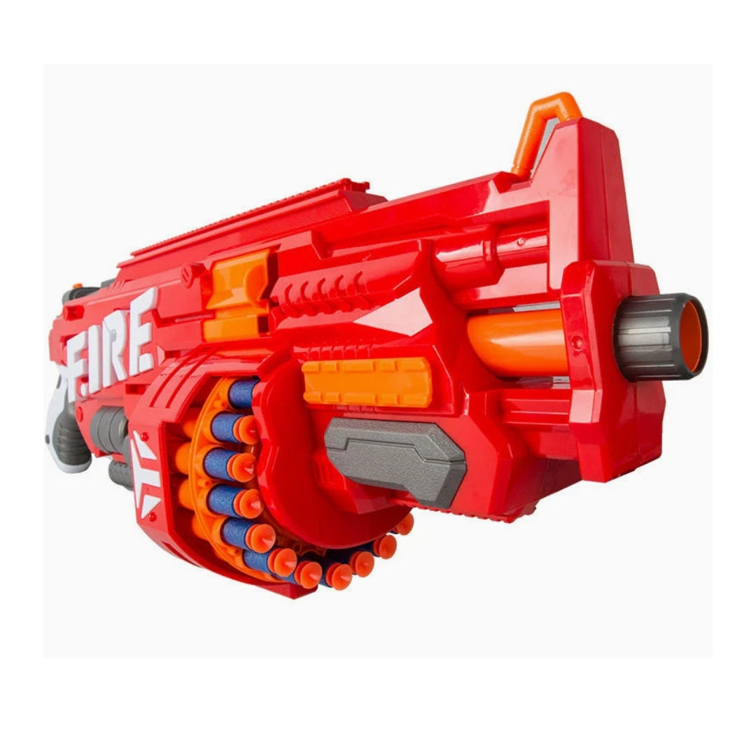 Based on a superhero machine gun (at half the size!), the SB486 shoots foam bullets up to 30 meters away and fires 20 rounds continuously.