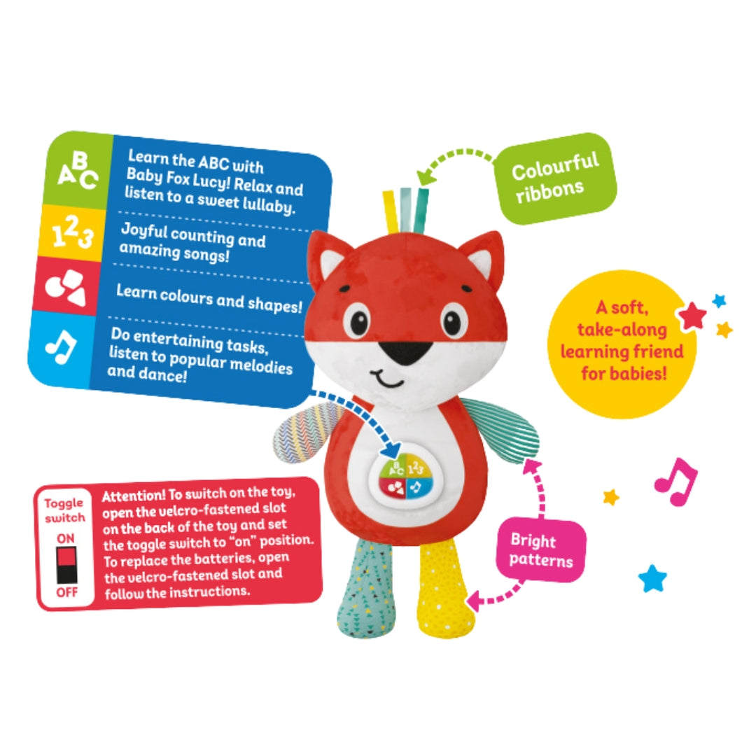 Meet Baby Fox Lucy, the soft and huggable musical plush that brings learning and fun to life! With colorful patterns and a glowing tummy, Lucy captures your baby’s attention while teaching ABCs, counting, shapes, and colors through cheerful songs, poems, and engaging activities.