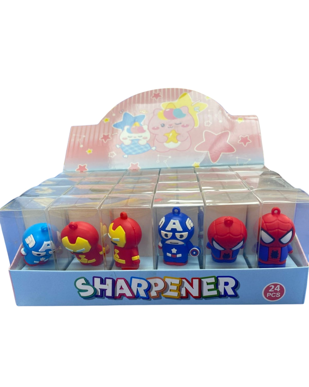 This set features manual pencil sharpeners designed to look like popular Marvel characters such as Captain America, Iron Man, and Spider-Man. Each sharpener includes a small canister to collect shavings, making them practical for both school and home use.