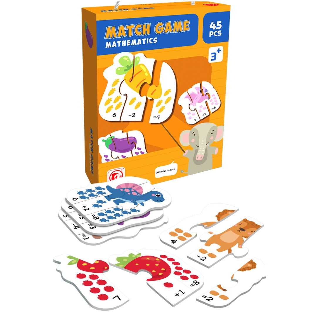 This 45-piece puzzle set helps children aged 3 and up learn basic math and counting skills through fun matching activities. With numbers, shapes, mathematical symbols, and corresponding illustrations, it encourages early arithmetic learning, cognitive development, and interactive play