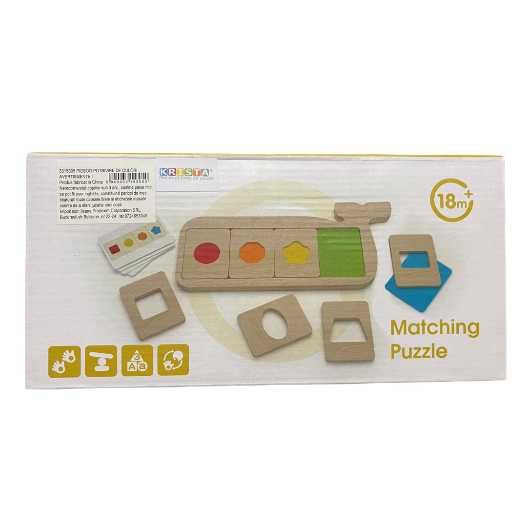 Encourage early learning with this Montessori Colors & Shapes Matching Puzzle, designed for children aged 18 months and older. Crafted from 100% natural beech wood, it features colorful cards, assorted wooden shapes, and a sturdy matching base, helping little ones develop color and shape recognition, fine motor skills, and hand-eye coordination through engaging, interactive play.