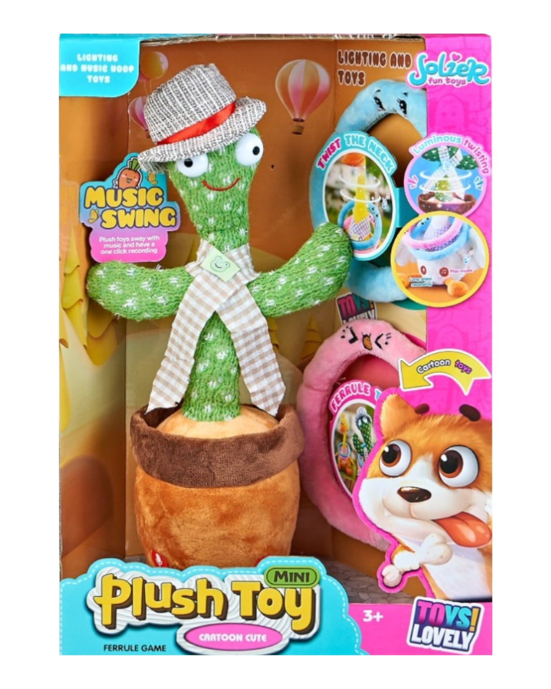 The Music Swing Recording Cactus swings and dances to fun tunes while recording and repeating phrases spoken by children. Its soft, plush design and flashing LED lights make playtime engaging while helping develop fine motor skills, hand-eye coordination, and understanding of cause and effect.