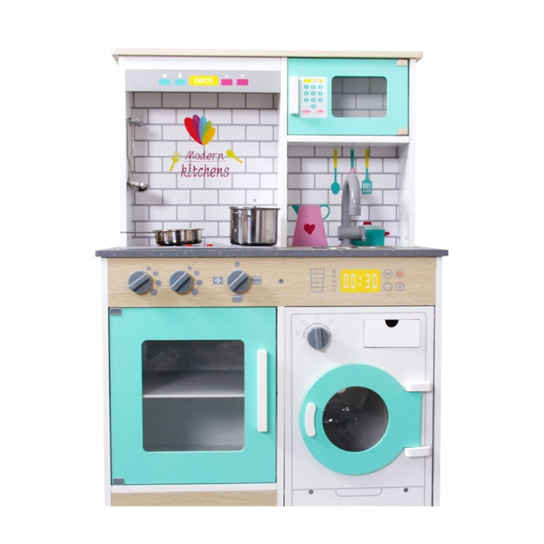 NEW MODERN KITCHEN SMALL – Wooden Pretend Play Kitchen & Laundry Set (Ages 3+)