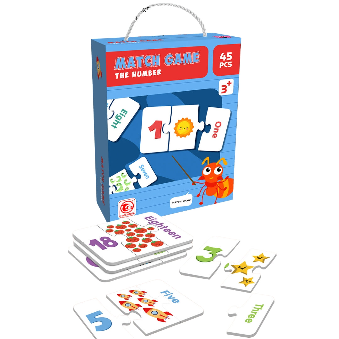 This 45-piece puzzle set helps children learn numbers and improve counting skills through interactive matching. Featuring numbers, corresponding words, and colorful illustrations, it promotes cognitive development, observation, and critical thinking for kids aged 3 and up.