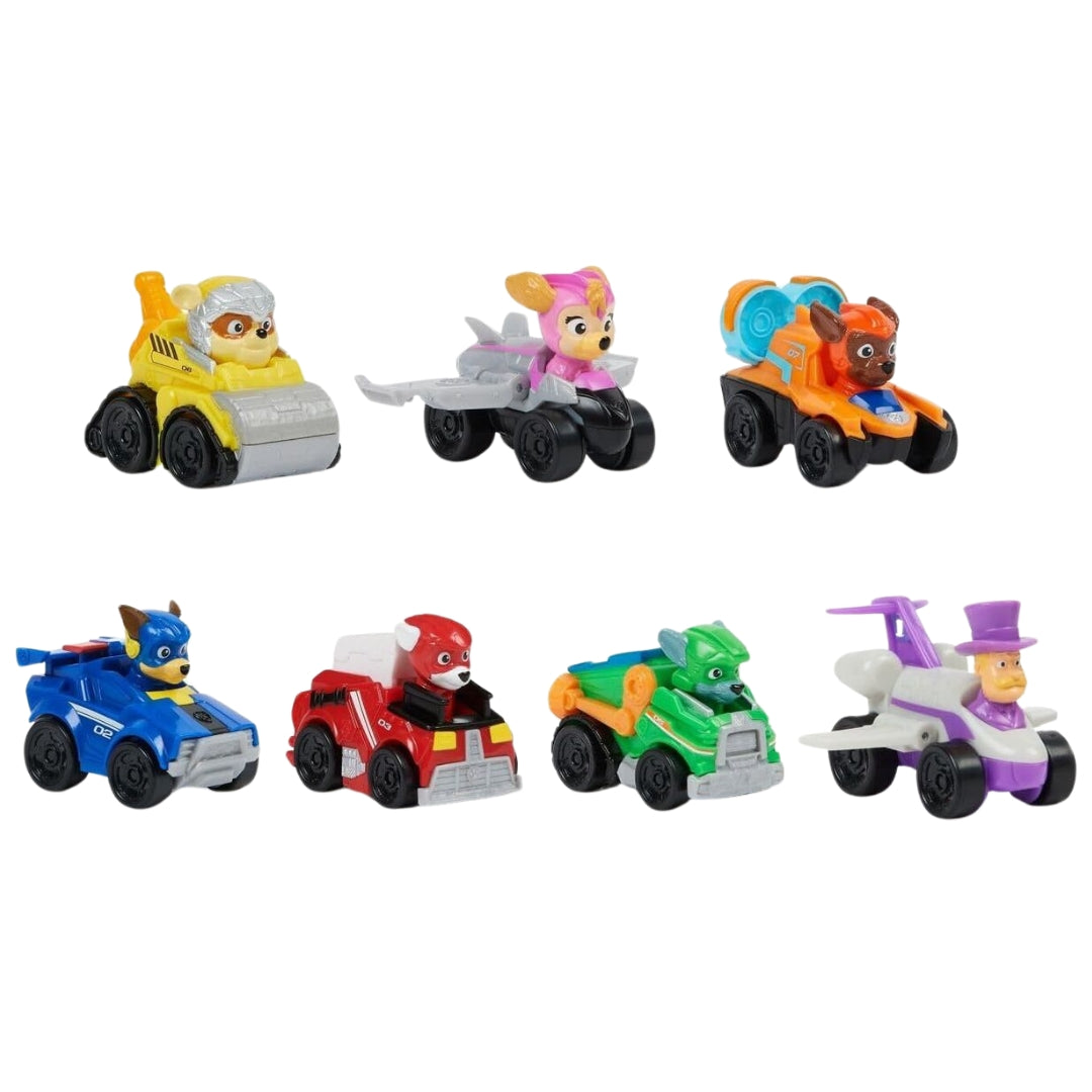 Bring home the excitement of PAW Patrol: The Mighty Movie with this action-packed Pup Squad Racers set! Featuring all your favorite pups in their official movie uniforms, these 2.5-inch mini vehicles are perfectly sized for little hands and big adventures. Each pup is sculpted mid-race for a dynamic, high-speed look—ears flying, ready to save the day!