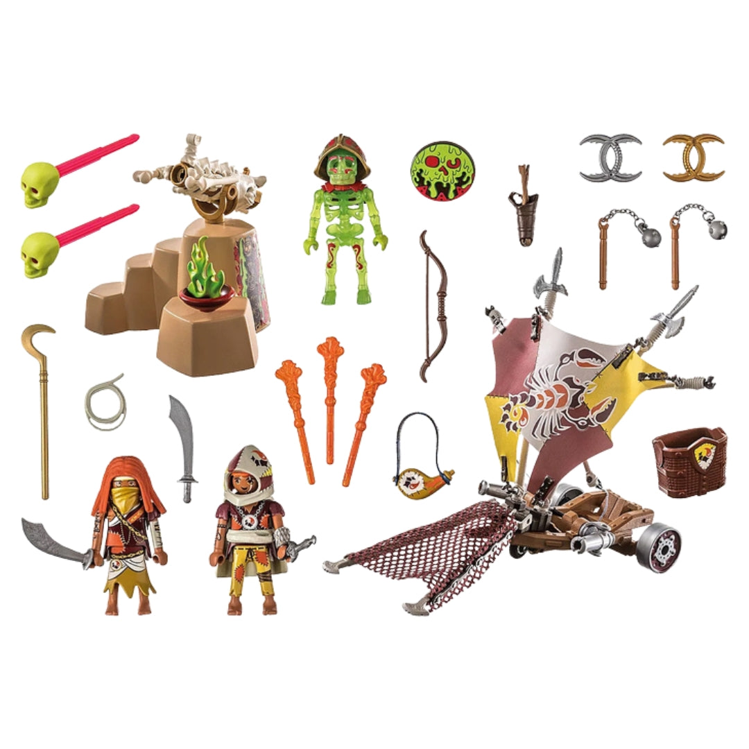 Race across the desert with the agile and daring Ahari warriors aboard their powerful Dune Blaster! Equipped with wind sails for high-speed maneuvers, a fold-out net for capturing enemies or scorpions, and sponge projectiles for action-packed play, this set brings the inventive desert world of Sal'ahari Sands to life.