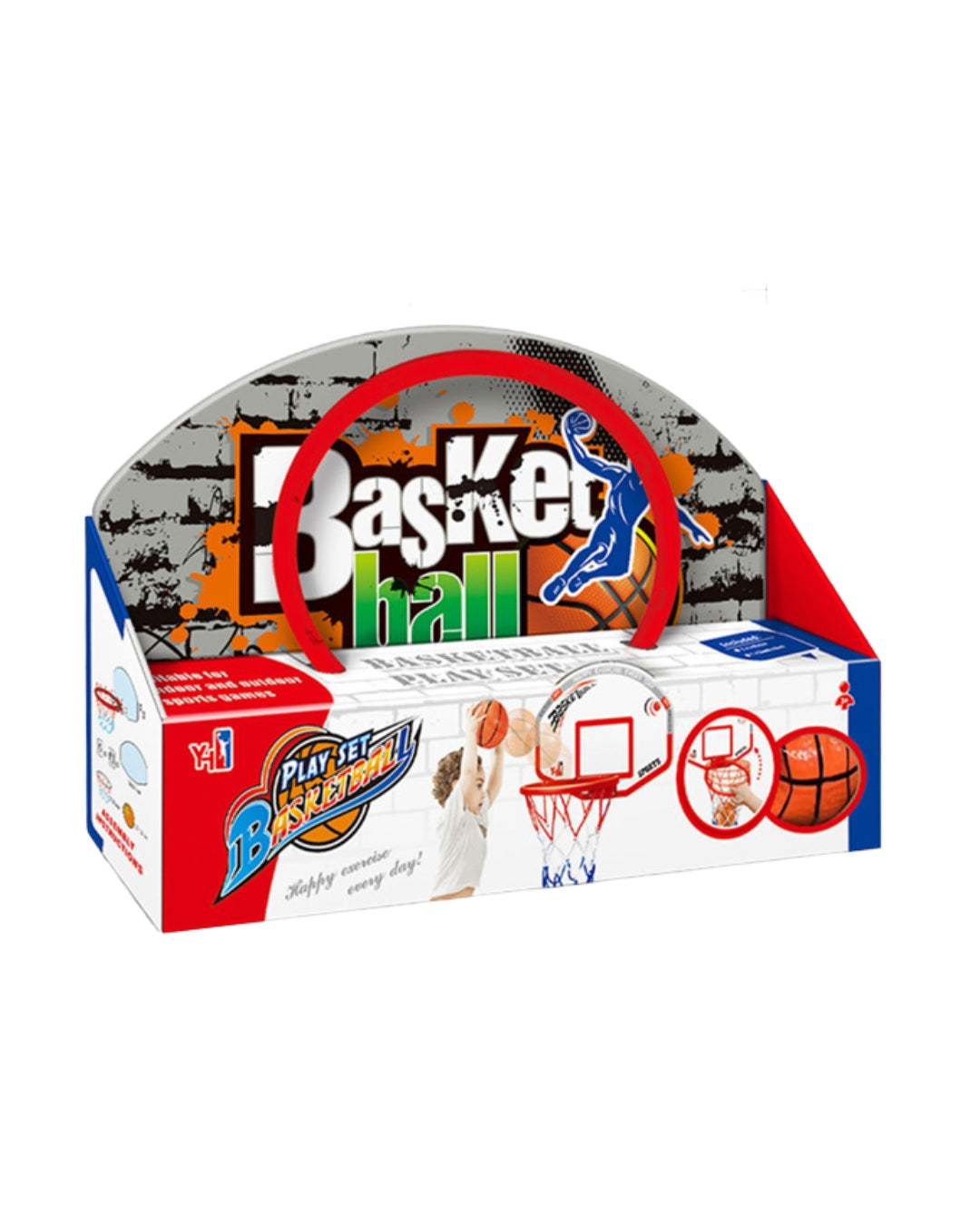 This Play Set Basketball is a vibrant and colorful indoor toy that includes a full-sized basketball hoop, a small ball, and an inflator for convenient setup, providing children with hours of fun, promoting active play, and fostering skill development through engaging basketball activities.
