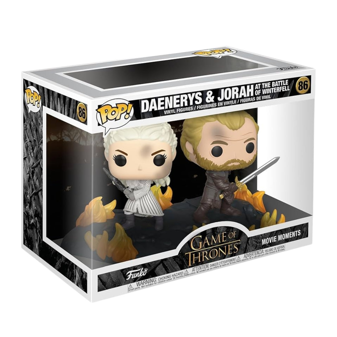 Bring the epic world of Game of Thrones to life with the Pop Moment! TV: Daenerys & Jorah Back-to-Back with Swords collectible figure set. Featuring fan-favorite characters Daenerys Targaryen and Jorah Mormont poised for battle, this detailed duo captures their iconic alliance and readiness for action. Perfect for collectors and fans alike, this display-worthy set showcases their legendary swords and dynamic poses, making it a must-have addition to any Game of Thrones memorabilia collection.
