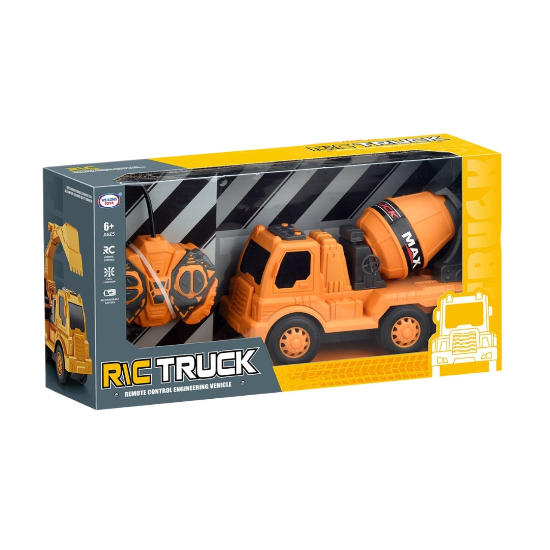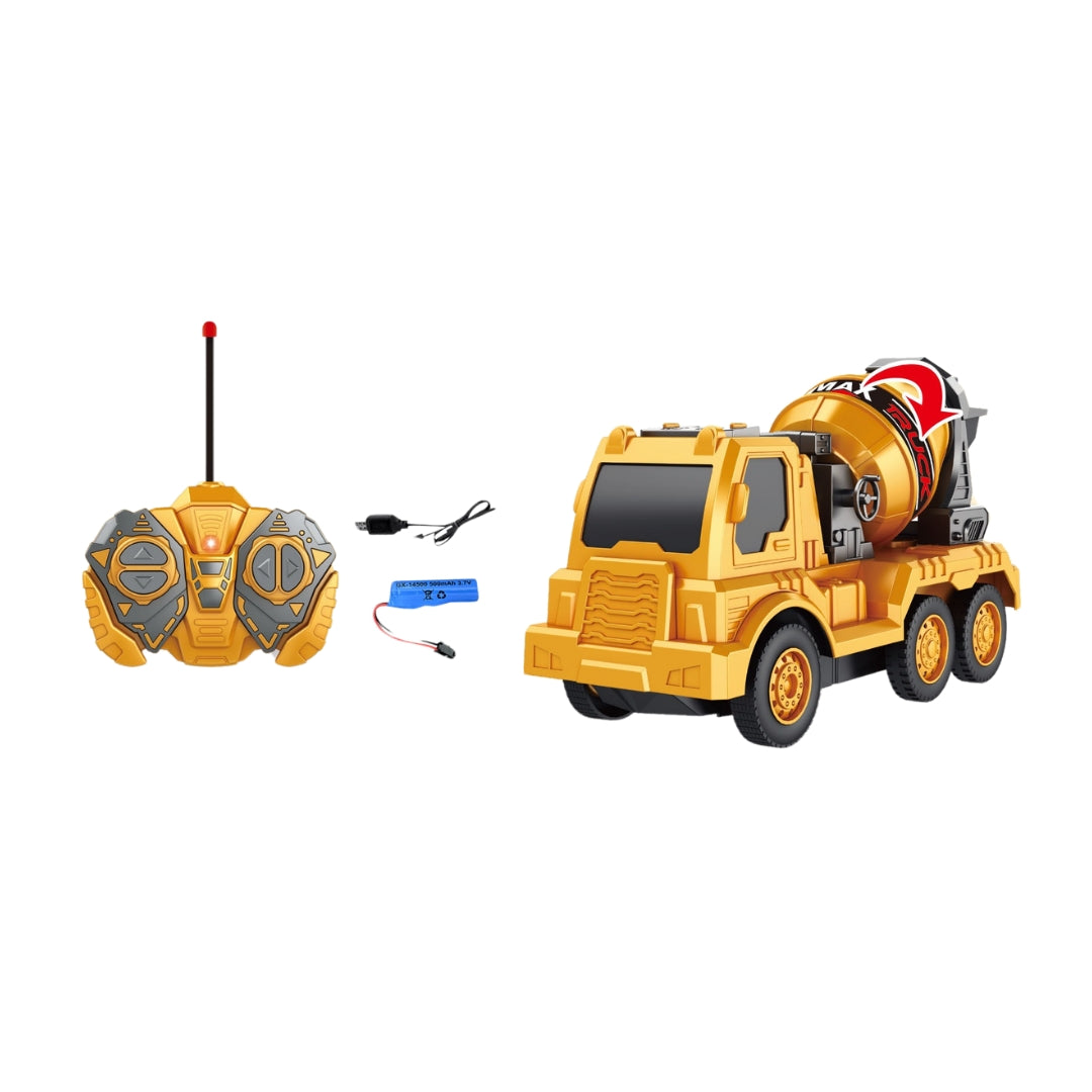 The RC Cement Truck is a remote-controlled construction vehicle in the shape of a cement mixer truck, designed for children aged 6 and above. It comes with a rechargeable battery for extended playtime and is accompanied by a remote control for full functionality, offering hours of creative play with a realistic cement mixer functionality.