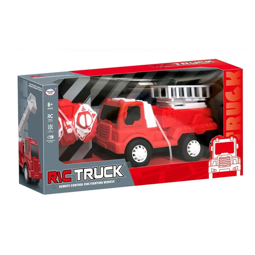 The RC firefighting truck is a remote-controlled firefighting vehicle designed for children aged 6 and above. It comes with a rechargeable battery for extended playtime and is packaged in a box with vibrant graphics and clear instructions for quick assembly and operation.