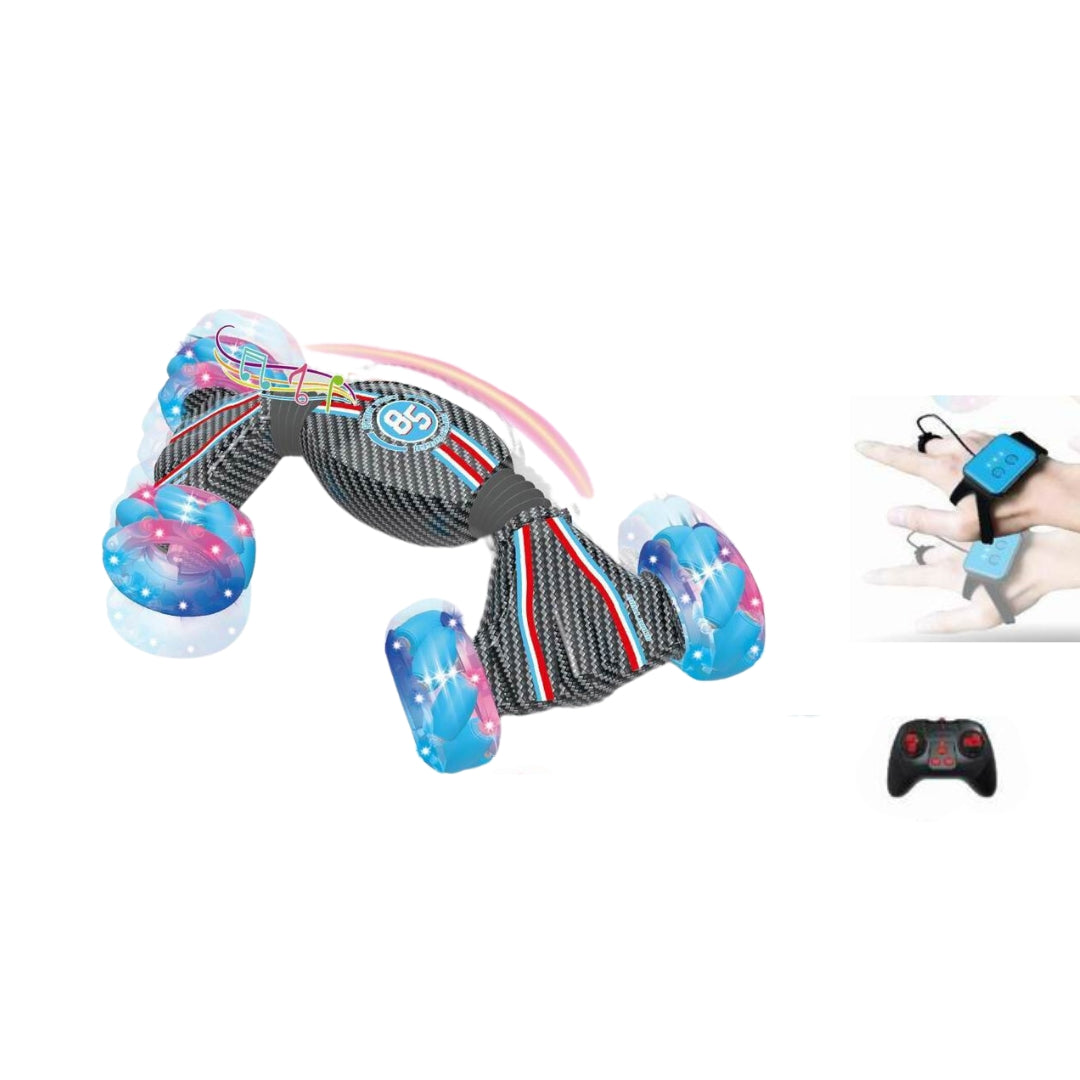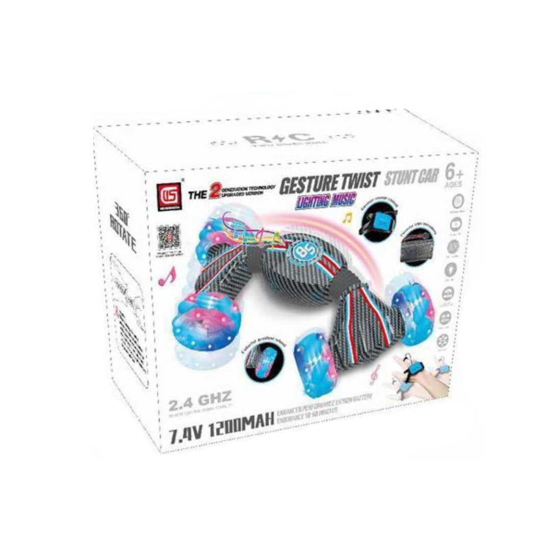 The children's stunt car utilizes a 2.4GHz remote control system, enabling control over a long distance of more than 80m, with capabilities including climbing, twisting, forward and backward movement, automatic 360-degree rotation demonstrations, 6 driving forces, as well as watch and gesture sensing remote control for drift maneuvers. Featuring 2 control modes, this RC stunt car can be operated via traditional remote control or by using a watch, allowing for gesture-driven control and transformation based on your movements.