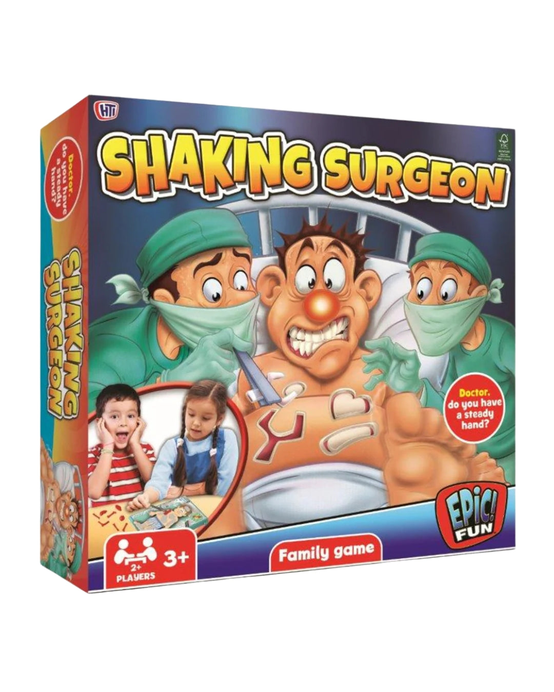 The Shaking Surgeon Board Game is an exciting skill and suspense tabletop game that brings the classic operation challenge to life with a fun twist. Players use the included tweezers to carefully remove body parts from a patient, but must be cautious the patient vibrates if the sides are touched, adding tension and testing precision.