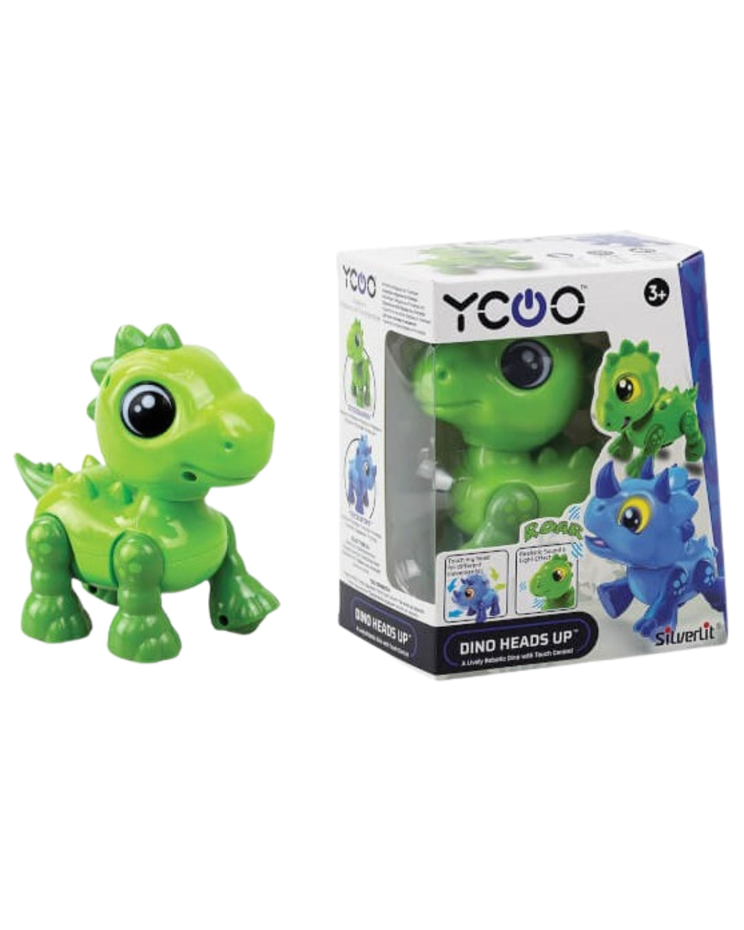 The Silverlit YCOO Dino Heads Up is an interactive dinosaur toy designed to engage children with fun and realistic movements. Simply push its head down to make it roar and move forward, or lift its head to make it roar and move backward. The toy features realistic dinosaur sound effects and LED light-up eyes for added excitement. Suitable for children aged 3 years and up, it provides hours of interactive play and imaginative fun.