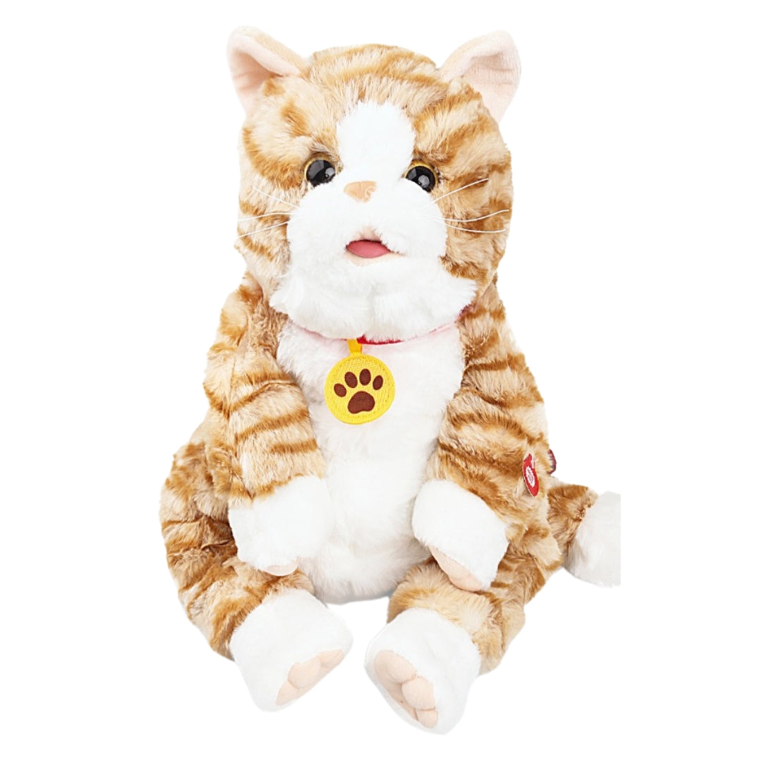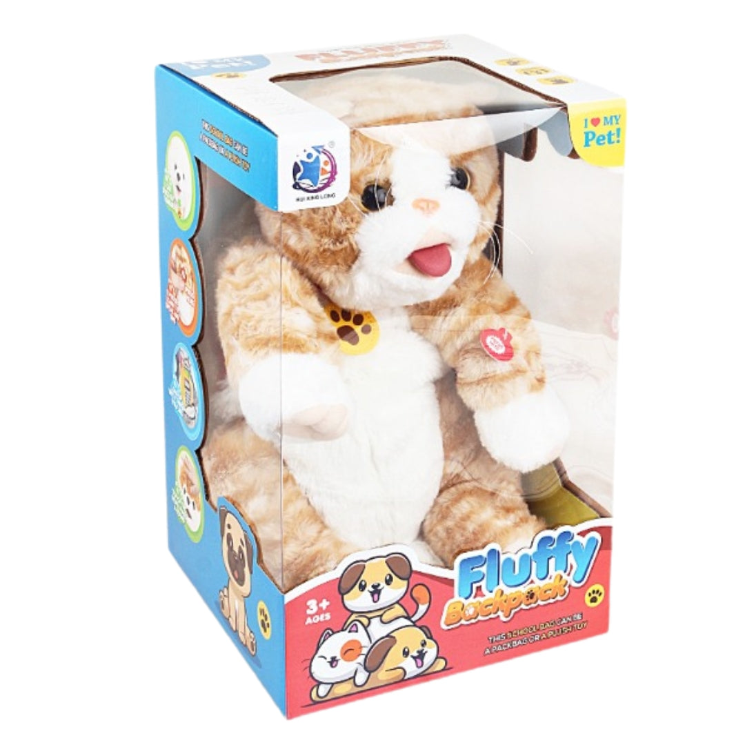 The Smart Plush Yellow Cat Backpack is a cute and functional companion for kids. Measuring 32.5cm tall and 20cm wide, it features fun interactive functions like singing, licking tongue action, and touch response, while also offering storage space for small items perfect for everyday adventures.
