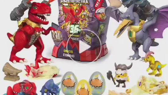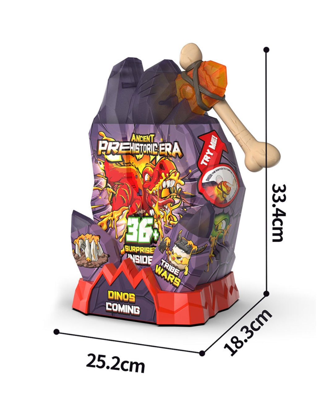 The Smashers Dino vs. Aliens Toy from the Ancient Prehistoric Era Tribe Wars line is a smash-and-build playset packed with over 36 surprises. It includes parts to build a dinosaur and an alien, along with slime, sand, and foam compounds for a fun, hands-on tactile play experience.