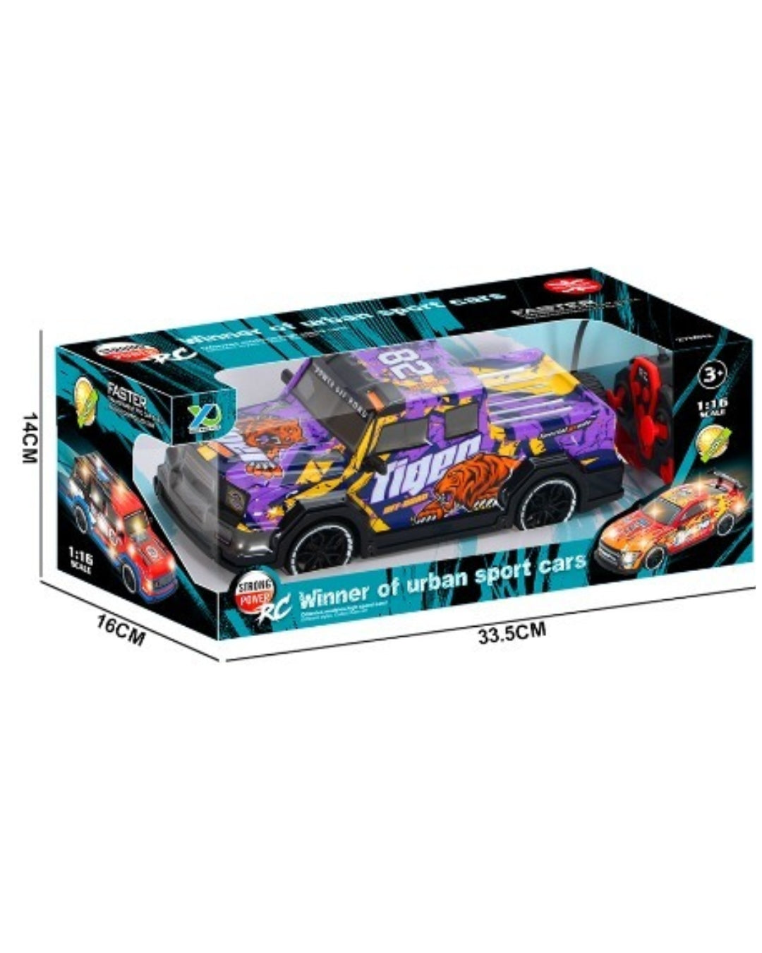 Experience high-speed urban racing with the Tiger 1:16 scale RC car, proudly labeled “Winner of Urban Sport Cars.” Designed for both beginners and hobbyists, this remote-controlled car offers smooth maneuverability and exciting play. Measuring approximately 33.5 × 16 × 14 cm, it is compact yet powerful, making it perfect for indoor or outdoor racing adventures. Its sleek design and sporty look make it a standout addition to any RC car collection.