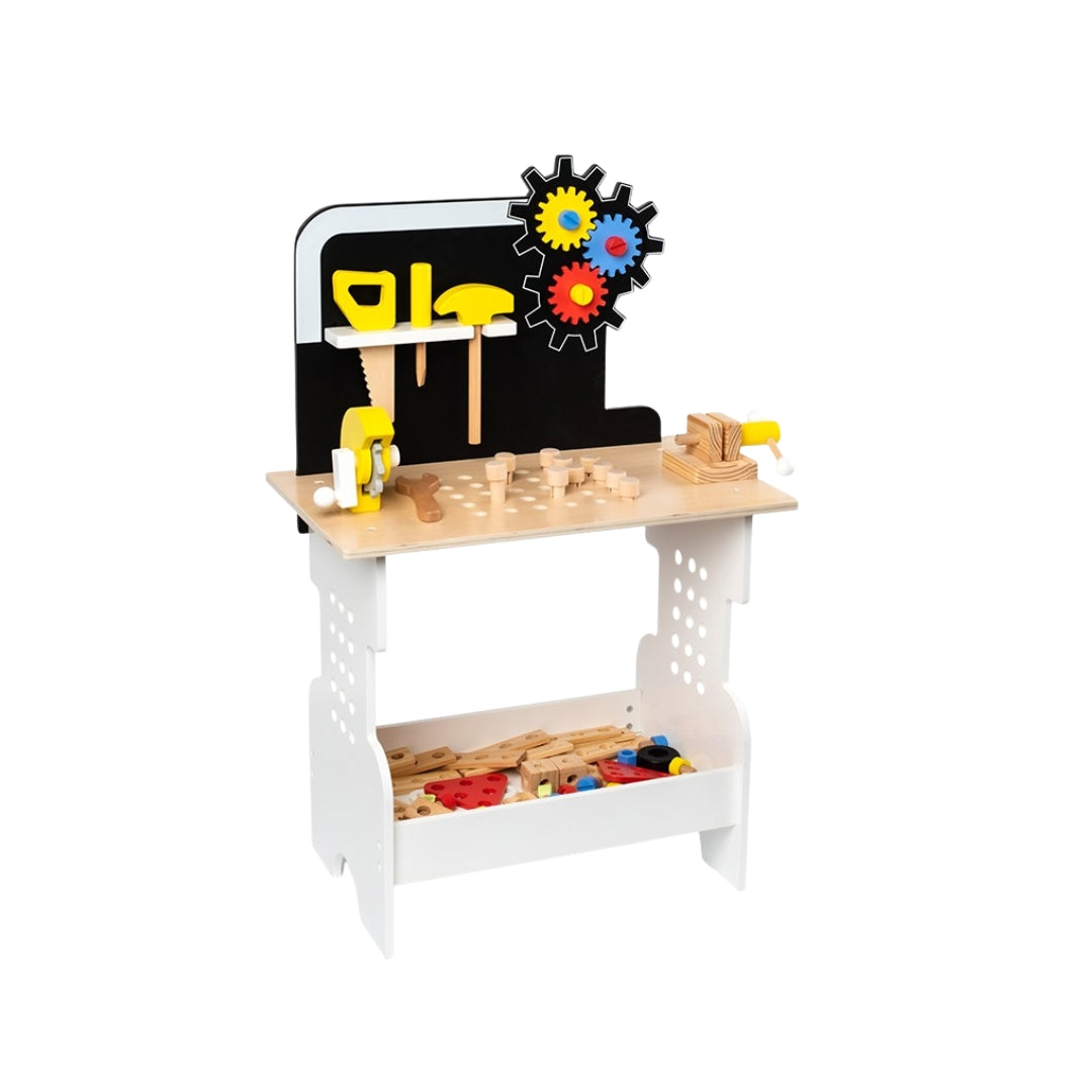 The Tool Table Black is a stylish and sturdy wooden workshop playset designed to inspire creativity and hands-on learning. Perfect for little builders, this pretend play tool bench comes with realistic wooden tools that help children develop fine motor skills, problem-solving abilities, and hand-eye coordination.