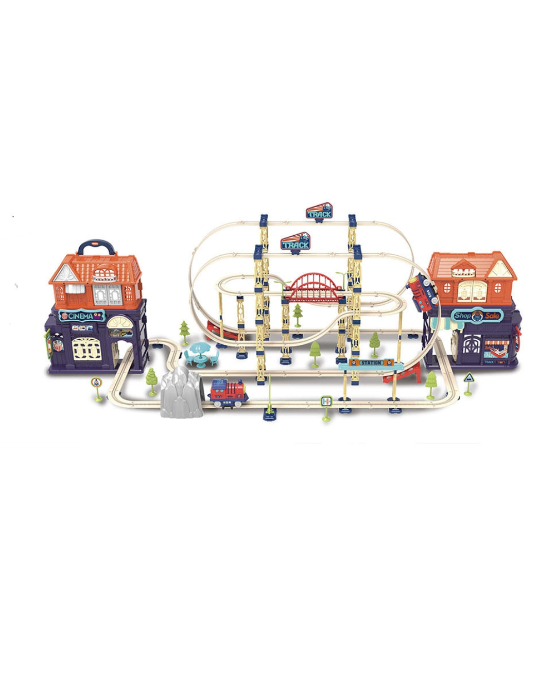 Dive into adventure with our Colorful Vehicles Construction Play Set, featuring a variety of engaging scenarios like a track, parking area, cinema, shop, and train station. This learning toy enhances realism, helping children recognize and understand road signs while they play.