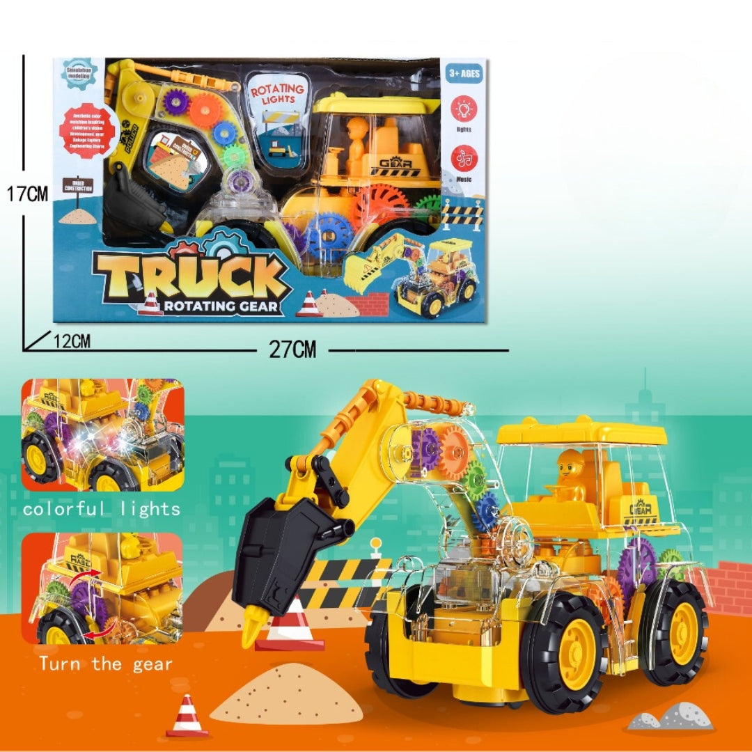 Experience the intricately detailed Tractor model from the "Truck Rotating Gear" series, featuring a unique yellow construction vehicle design with a transparent body and a driver figurine enclosed within. This special equipment showcases realistic design with exceptional detailing, flickering illumination, moving components, and a robust inertial mechanism for an engaging play experience.