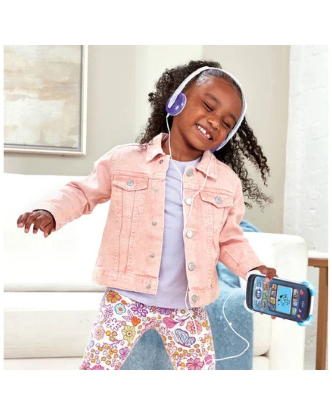 This portable V.Pod Magic Light music player features an animated LCD screen, kid-safe headphones, and over 100 songs, sounds, phrases, and educational content. Children can enjoy different music styles and play interactive games like Follow the Rhythm, Mix the Instruments, and Hidden Notes for fun learning on the go.