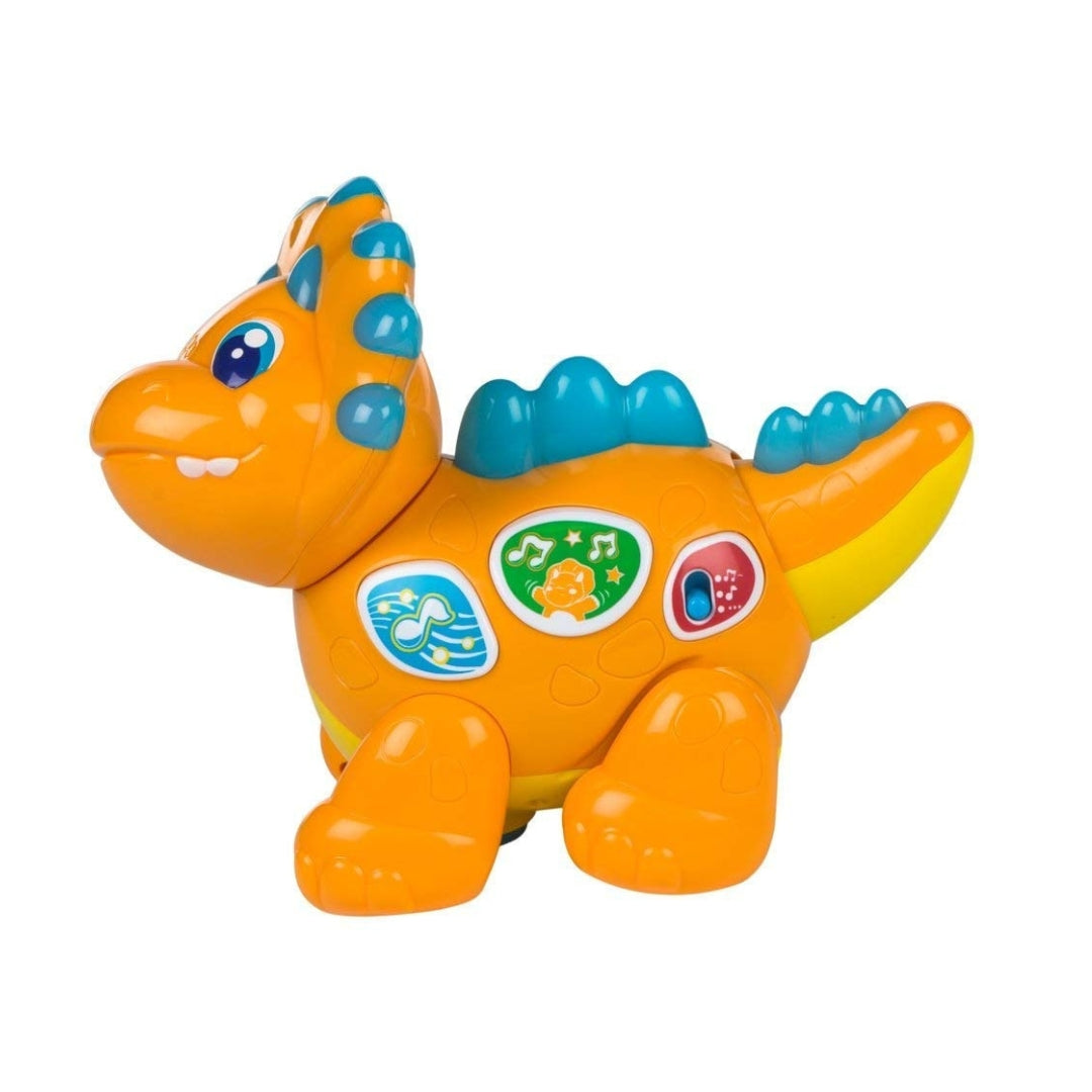 Watch in awe as this realistic dinosaur comes to life with its moving head, wagging tail, and bright lights. When it encounters an obstacle, it cleverly turns and continues its journey. With two fun modes of play, your little one can learn about dinosaurs in educational mode or enjoy cheerful melodies and sound effects in music mode. This interactive toy is perfect for sparking curiosity and imagination in young dinosaur enthusiasts!