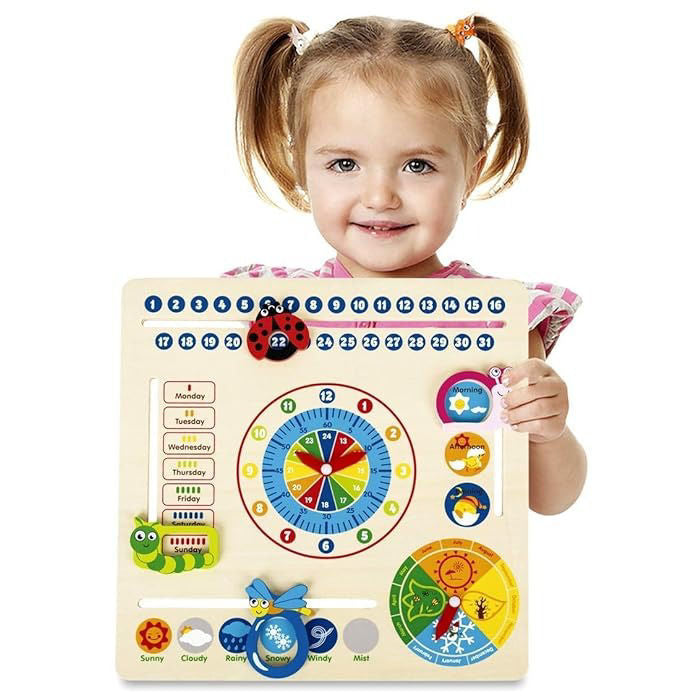 Spark Early Learning with our 6-in-1 Wooden Calendar! This engaging wooden calendar is the perfect way to nurture your child's curiosity and understanding of the world around them.