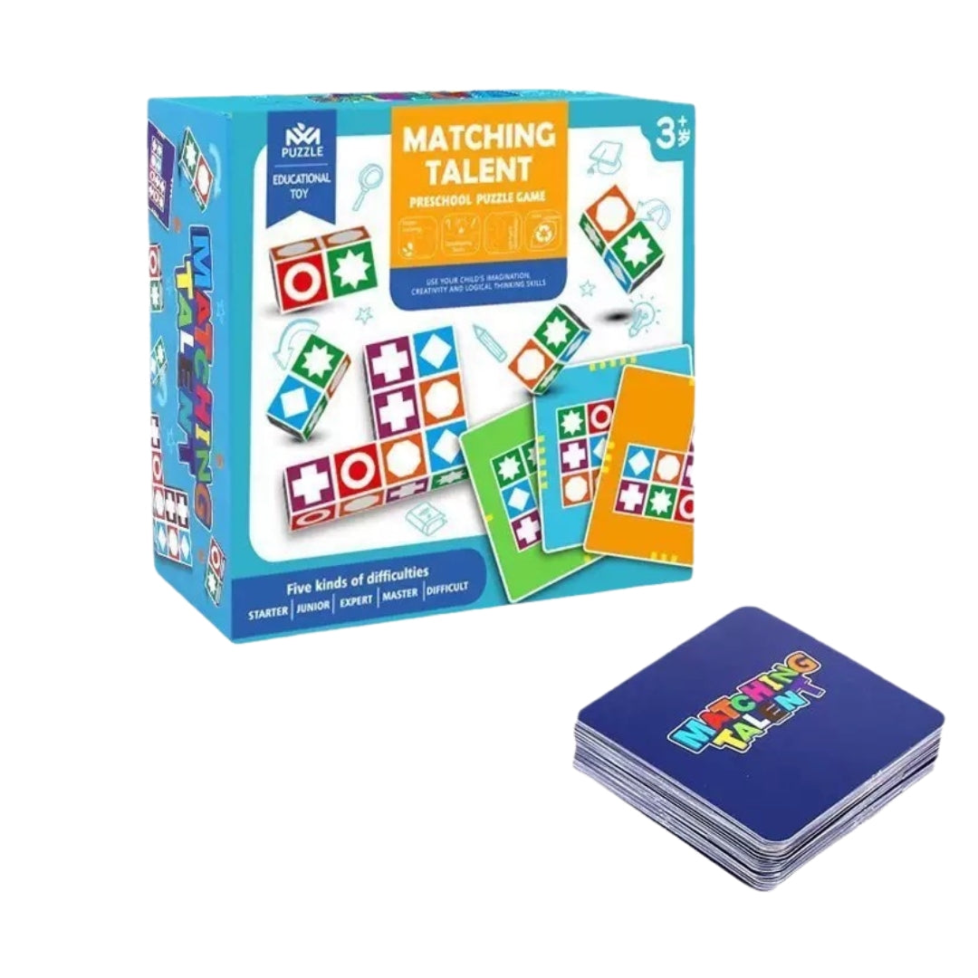 Designed for children aged 3 and up, this educational wooden puzzle game boosts cognitive and visual skills through fun matching challenges. Players race to recreate patterns from challenge cards using five colorful wooden blocks, sharpening speed, dexterity, problem-solving, and strategic thinking while learning fair play and healthy competition.